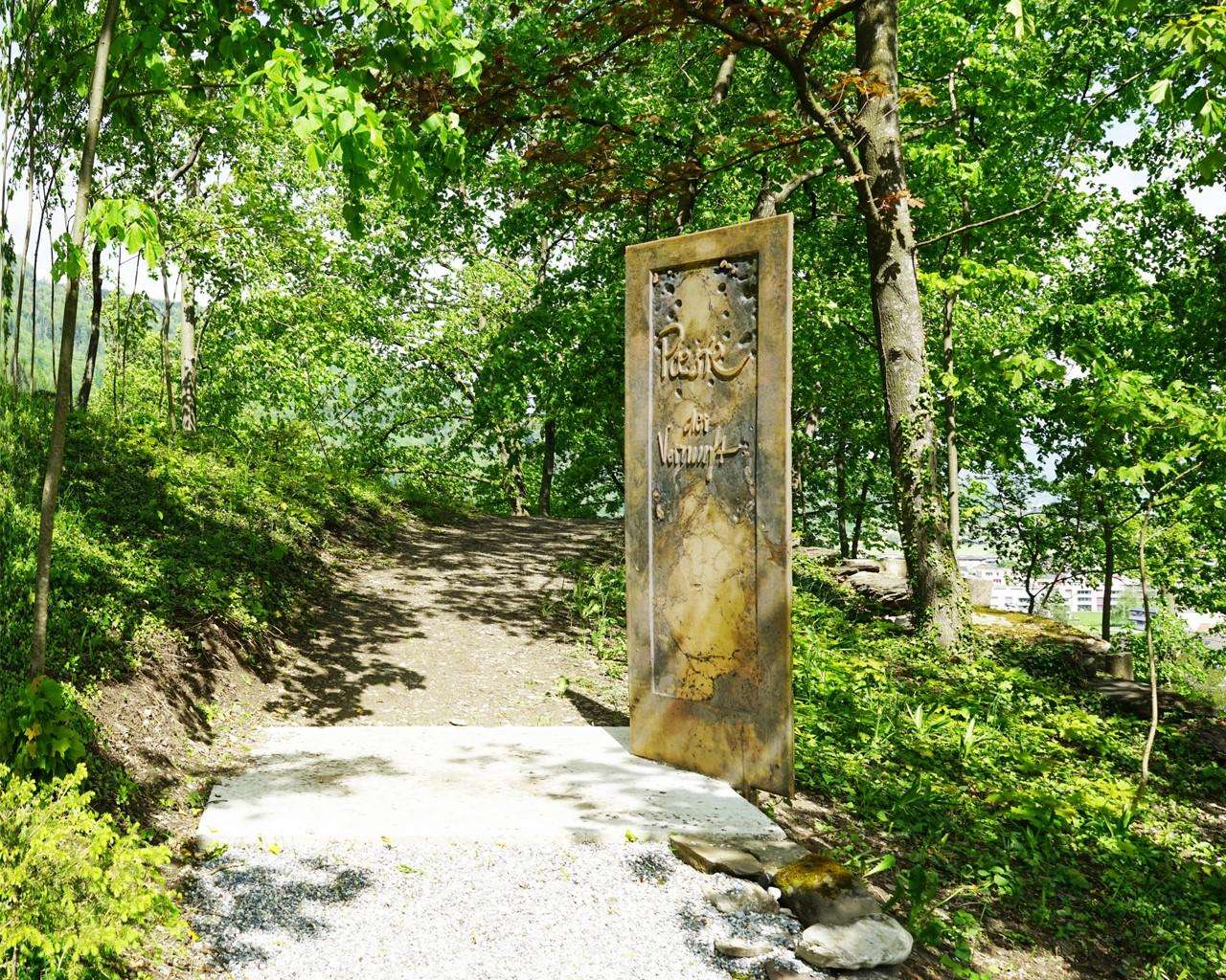 In 2015 the sculpture park GedankenBerg was established. This graceful hill in a wide landscape can be found in the municipality of Sevelen. The artistic installations were conceived by Gert Gschwendtner and realized together with Mali Gubser. The park includes 17 stations and covers an area of 20 000 m2.