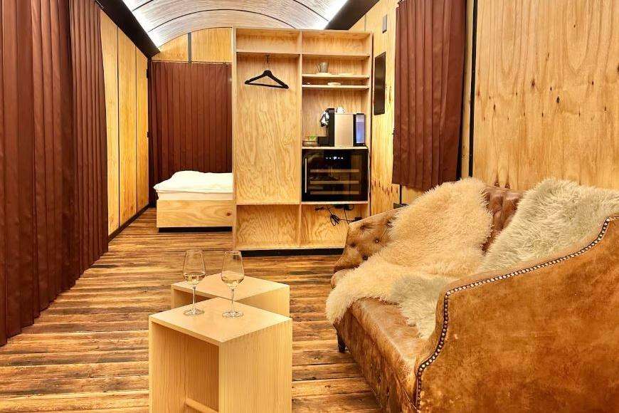 On the sagiareal, where cotton and materials for the spinning mill used to be delivered, there is now a discarded SBB cargo railcar that has been converted by our in-house carpenters into a very special experience room for up to 8 people.