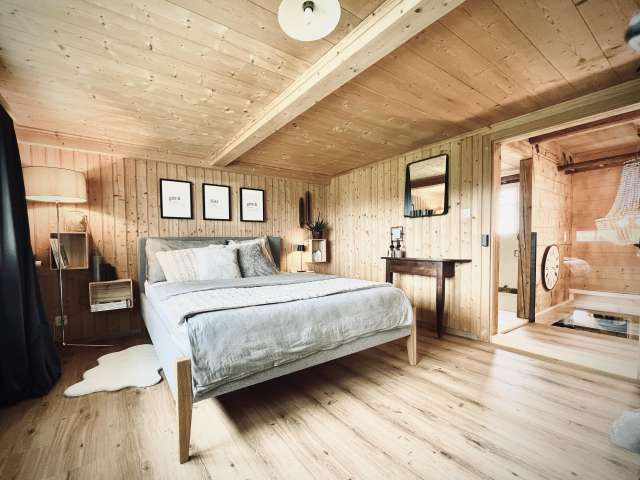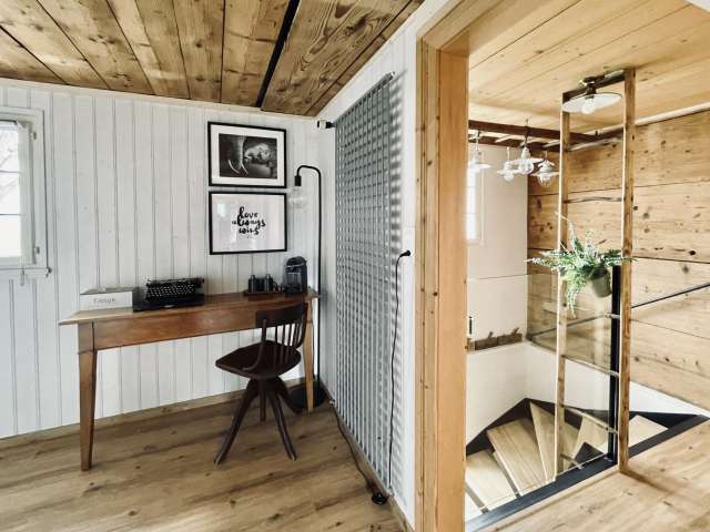 Since 2022, the holiday home "GöttiFritz" has been skilfully redesigned by interior designer Karin Sieber with great attention to detail. Each of the three large suites "Fritzli, Grittli & Röösli" have their very own flair character, history and mood. Equipped with a double bed, working area, additional sofa bed and private bathrooms.