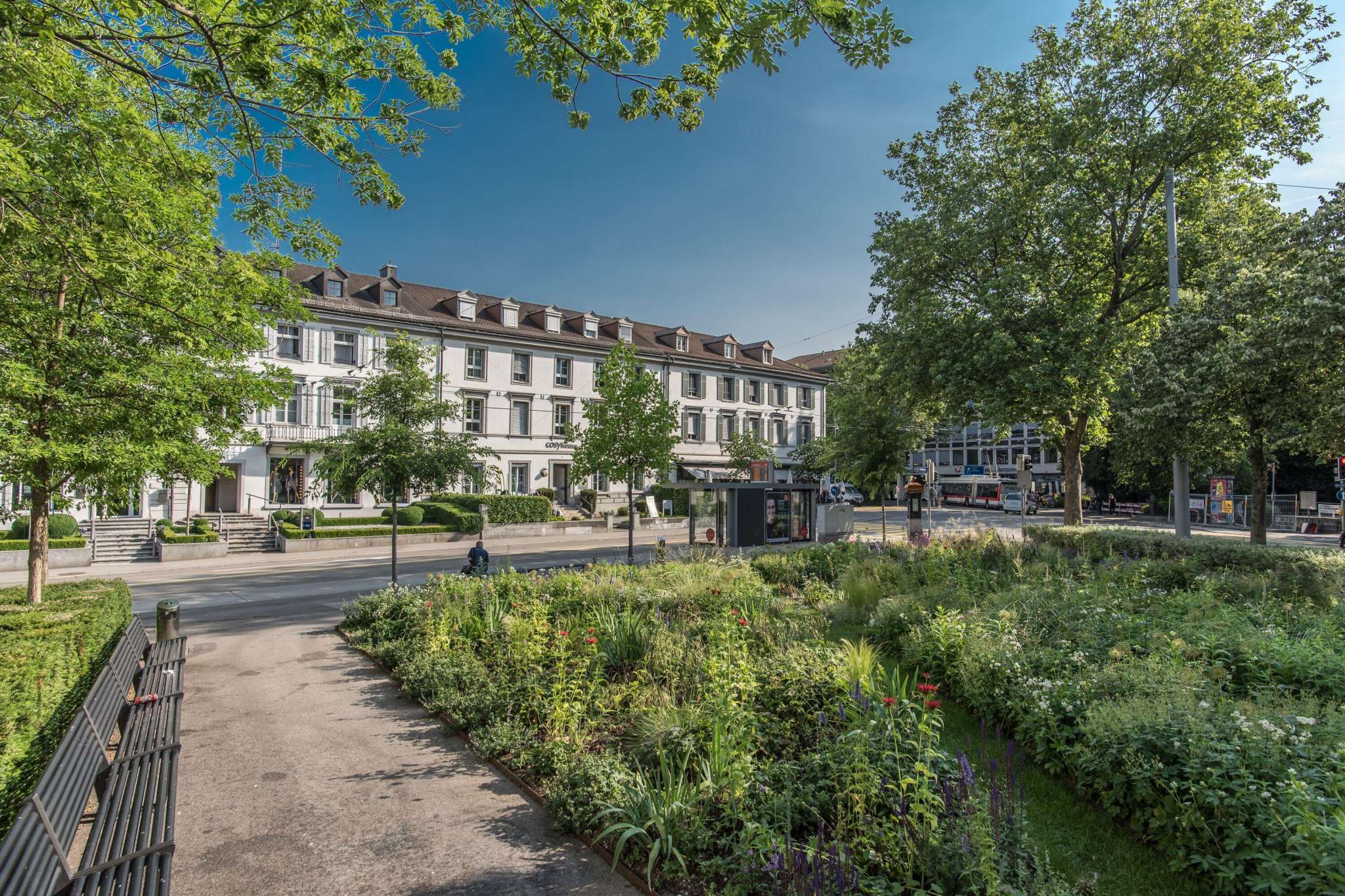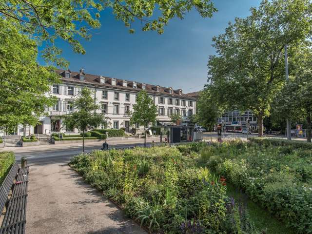 Right near the St.Gallen train station is the small but beautiful Grabenpärkli. Park benches line the beautiful flower beds and invite you to linger. The real eye-catcher is the sculpture of the important blast and explosion artist Roman Signer. From a bright red barrel, a strong, rich jet of water claps onto the ground.