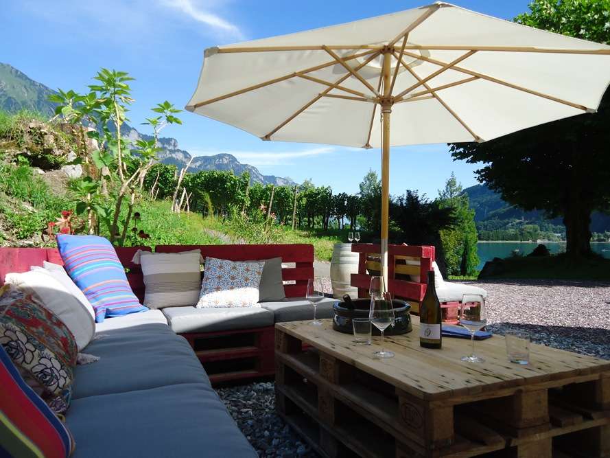 In our Grotto KALIFORNI directly at the lake we present our self-produced wines, tapas and a special atmosphere in the microclimate between the lake and the steep limestone rock walls of the Churfirsten.