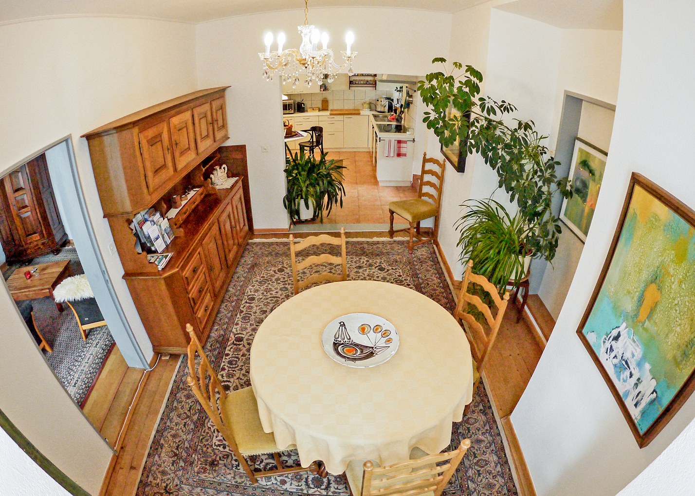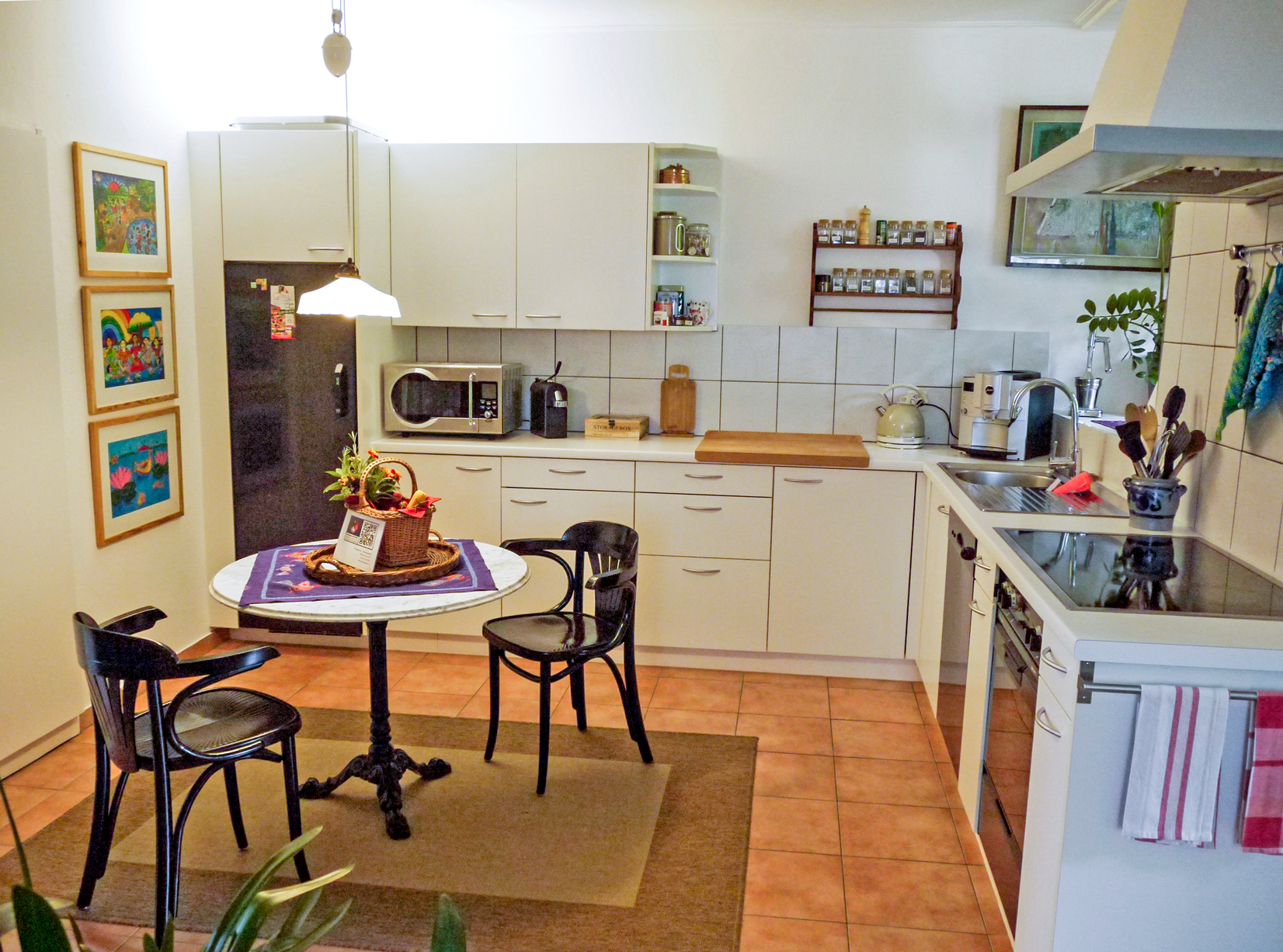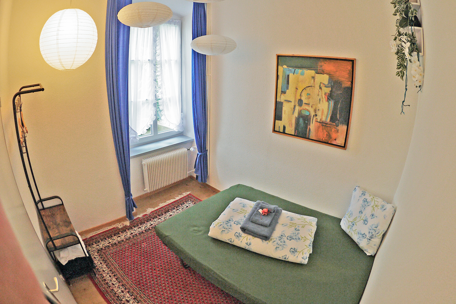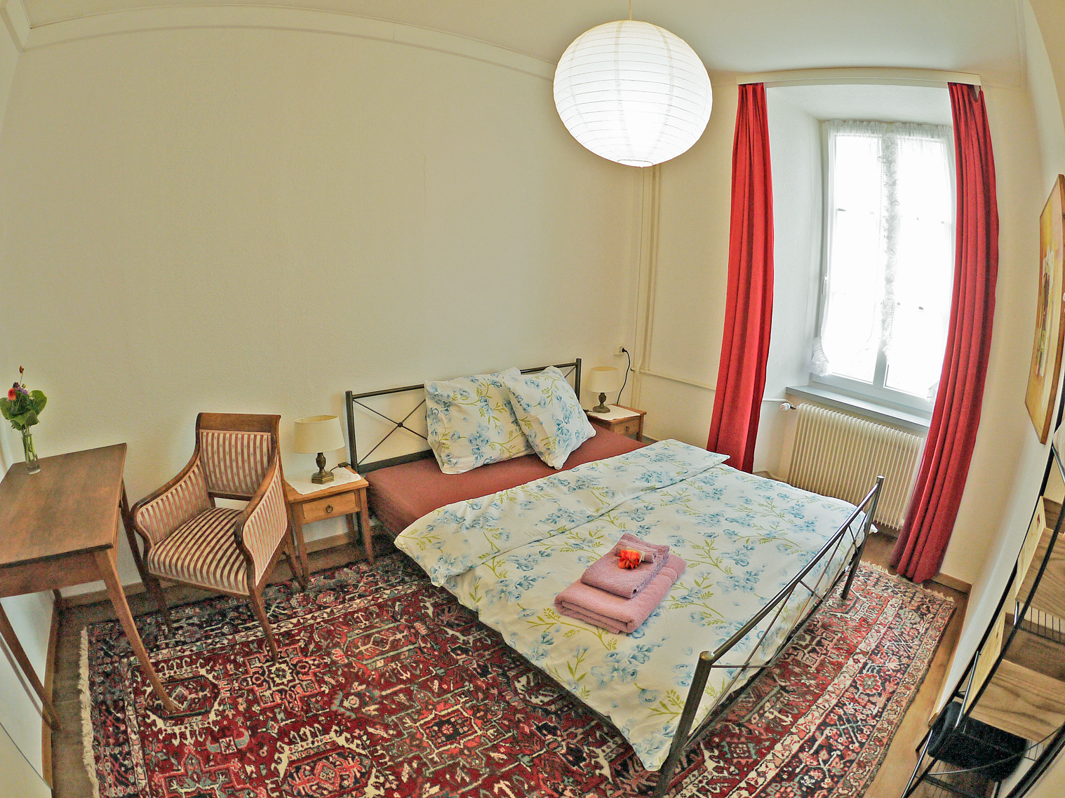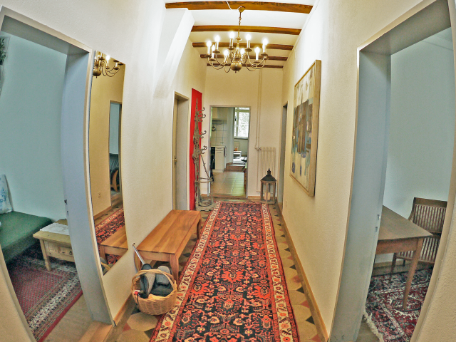The 6-room Sustena guest flat is in a quiet yet central location in Bischofszell. The old town house is located outside the town centre with a great view of the confluence of the Thur and Sitter rivers. Whether it's a short stay to visit friends, to take part in a further education course or to enjoy a relaxing holiday in the countryside? The flat with its own terrace is a haven of peace to relax in - or a stylish base from which to explore the marvellous region with its many opportunities for hiking or cycling.