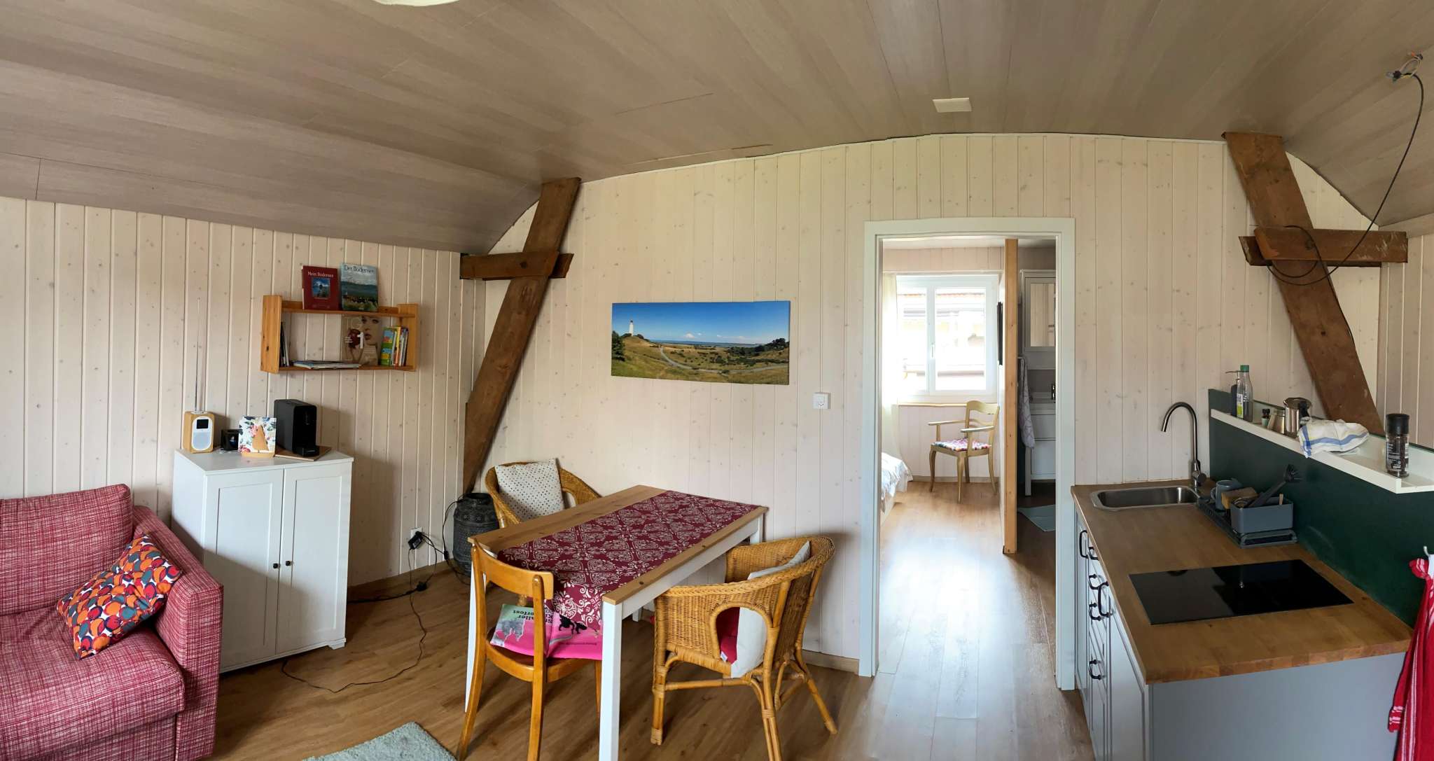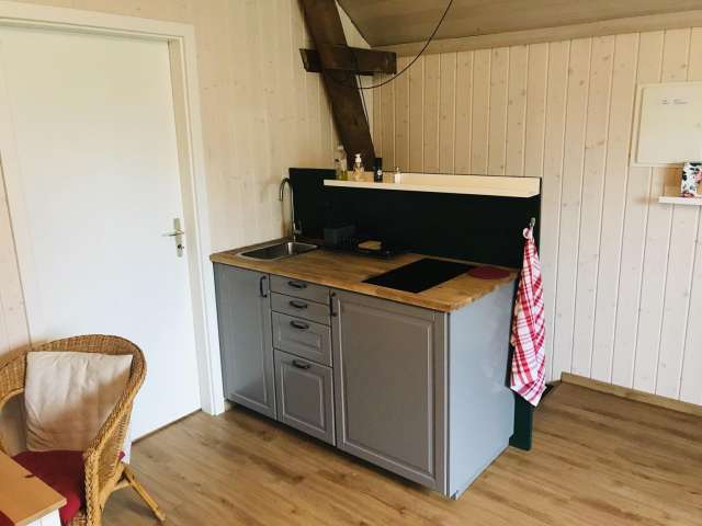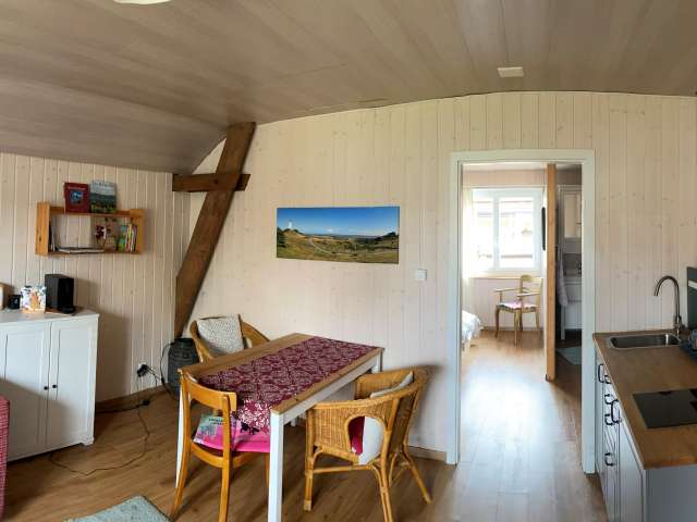 In Romanshorn, a 2-room guest flat awaits you in a quiet neighbourhood, in an outbuilding surrounded by wild vines. The train station, harbour, supermarket and lakeside promenade are only a 5-minute walk away.