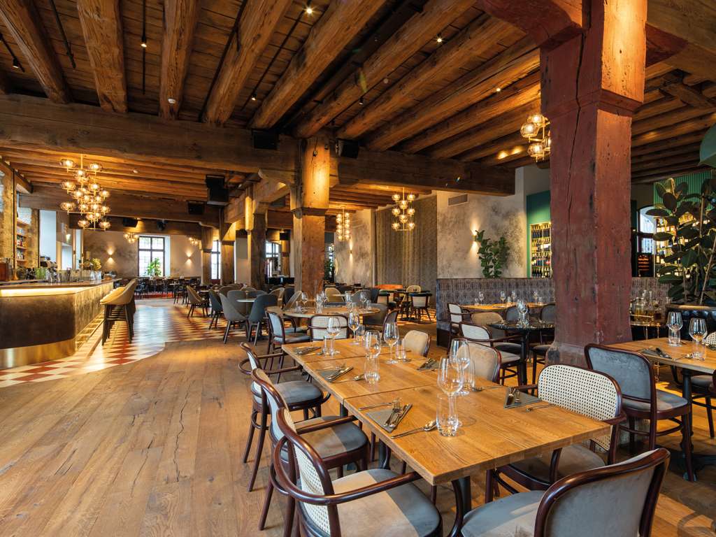 Following its renovation in 2019, the Güterhof now shines in new splendour: the former warehouse dating back to 1787 combines modernity and tradition. The historic foundation walls and modern furnishings exude a very special charm. The restaurant impresses with its spacious layout with various seating and dining areas and the large bar.