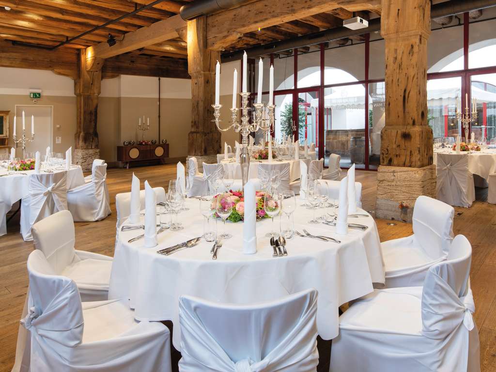 Güterhof is also known as an event location for private and business events, seminars and weddings. Book an area in the restaurant or on the marvellous terrace. For a larger event, book the Güterhof Hall (approx. 30 - 85 people) with its beamed ceiling and wooden pillars. The covered inner courtyard can also be used or hired.