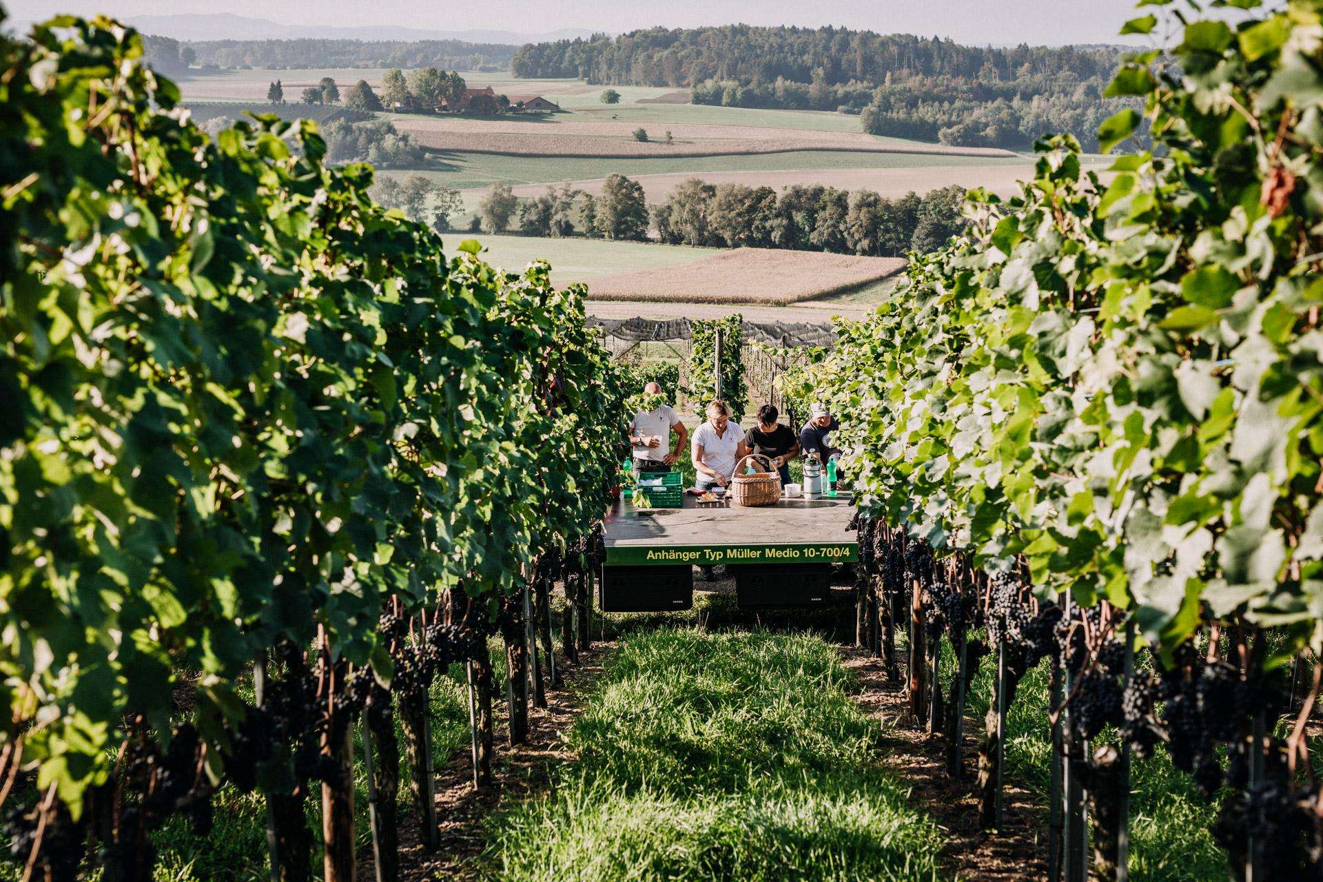 The Haag family has been involved in viticulture for generations. Nicole and Urs Haag run the family business with 12 hectares of dessert fruit and 4 hectares of grapes in the heart of Hüttwilen. Weinhandwerk, which the Haags run together with 3 professional colleagues, takes care of the pressing.