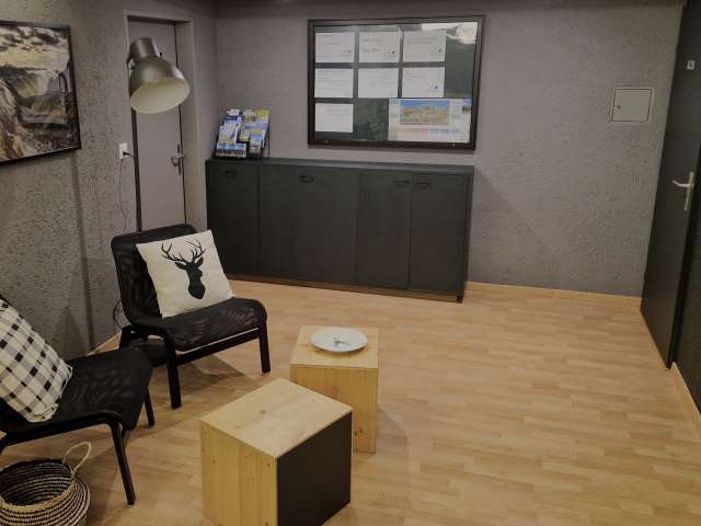 Welcome to our charming group house, which is equipped with seven inviting rooms, each of which can accommodate up to four people and has its own bathroom. Here you will find spacious lounges that invite you to socialize and a fully equipped gastro kitchen that enables culinary adventures for large groups. A separate, cozy kitchen is available for smaller groups.