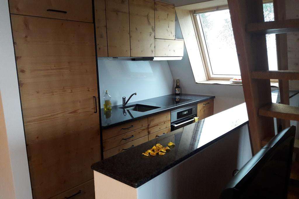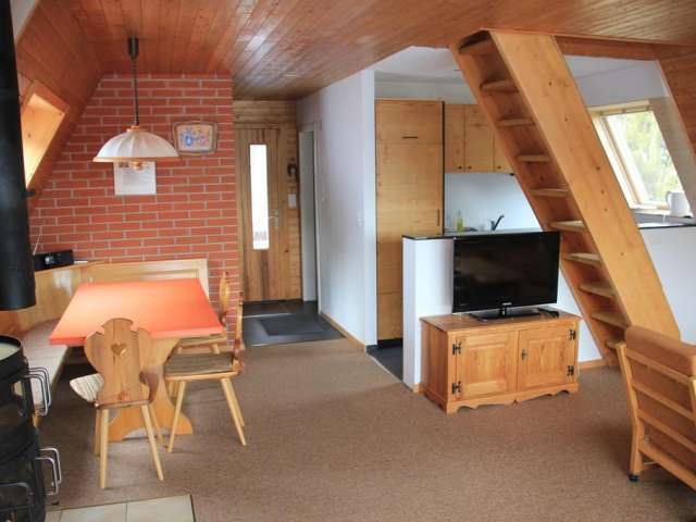 The apartment is furnished with lots of wood. The Swedish stove in the living area makes the stay very comfortable. The whole apartment has a carpet floor.