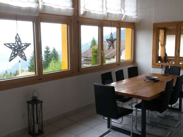 The spacious 6-room holiday apartment is situated in a beautiful and quiet location with a fantastic view on the Churfirsten and the valley. In less than 10 minutes on foot you can reach various restaurants, shops, bars and the gondola lift Prodalp-Express, which takes you to the skiing and hiking area. The apartment has a bicycle storage room and a garage. We aren't equipped for pets.