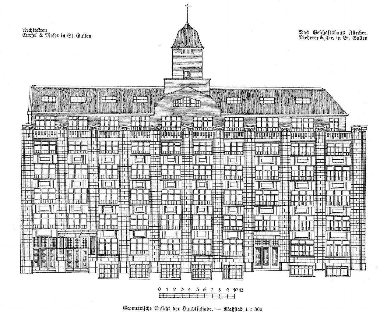 This commercial building was characterized by the fact that it had a dual function: manufacturing and representation. It served as a warehouse and transshipment point. The embroidery products, which came from various suppliers, including homeworkers, were also finished and packaged in the Pacific building. In addition, the administration, design and sales departments were located in the same building and often also an apartment for the patron. It is clear that the successful and proud businessmen also wanted to represent themselves with their “establishments”. At the time, St.Gallen was a small cosmopolitan city that absorbed influences from other cosmopolitan cities: Vienna, Munich, Berlin, Chicago and San Francisco served as a source of inspiration for the architects who built in St.Gallen.