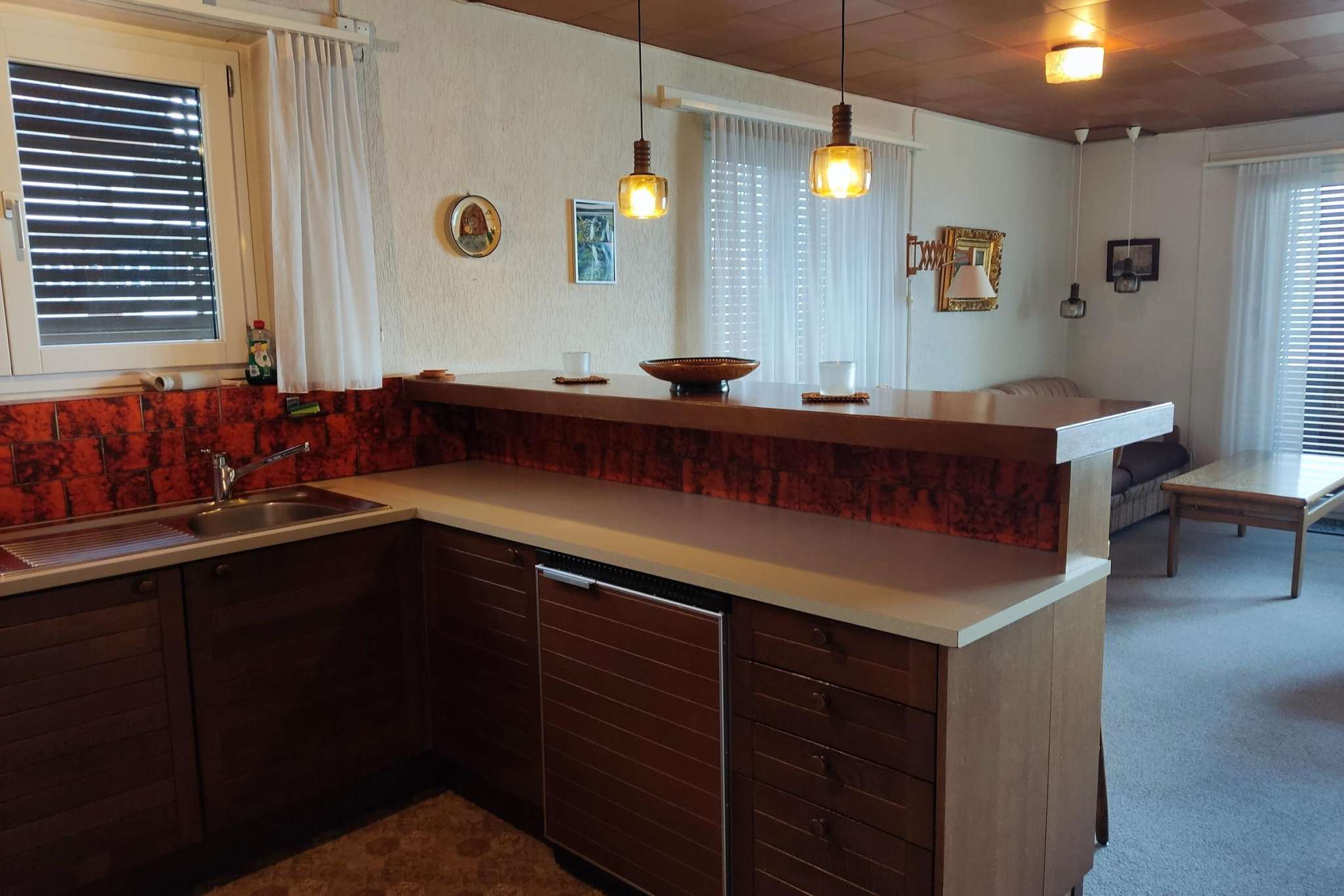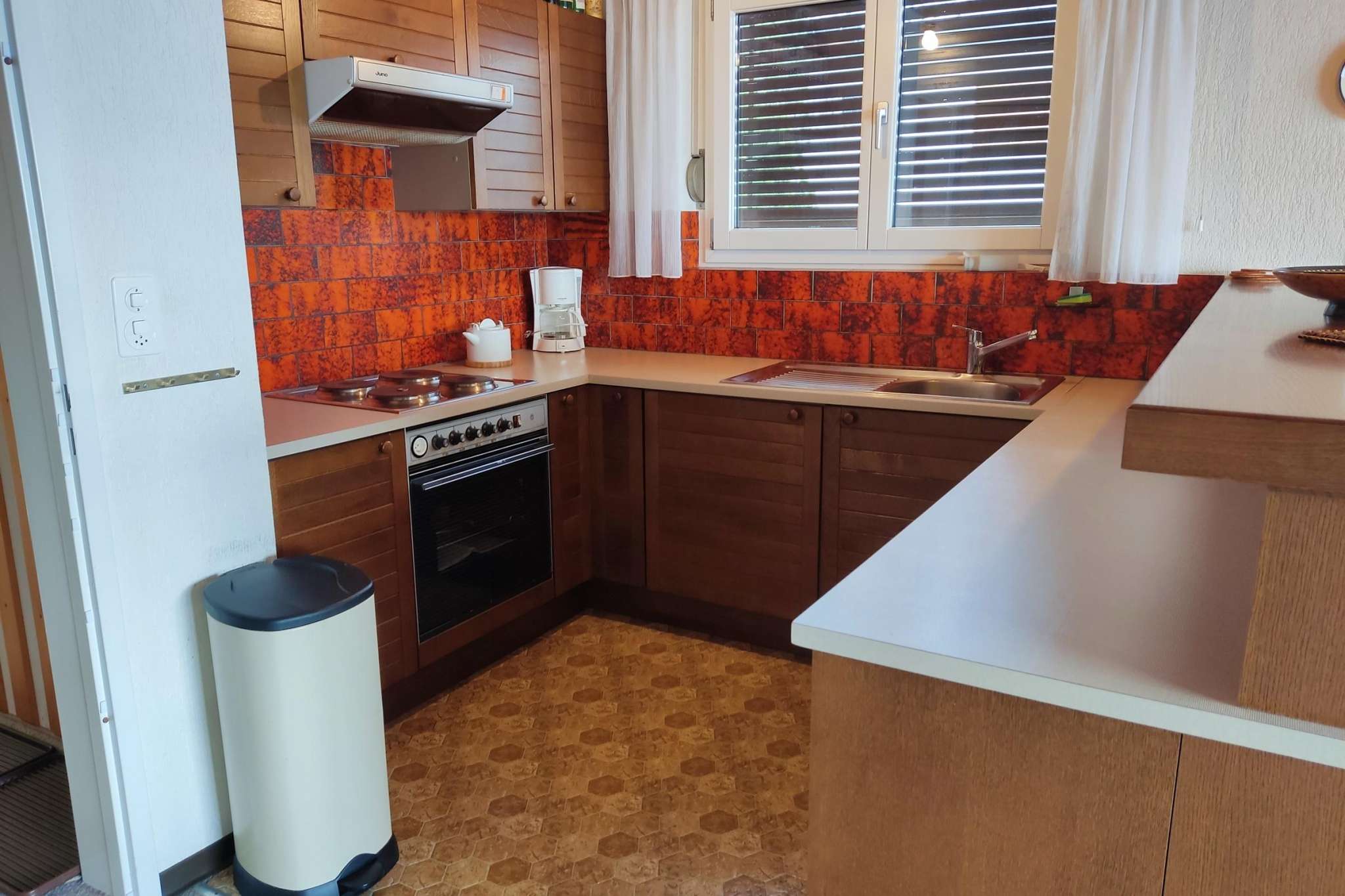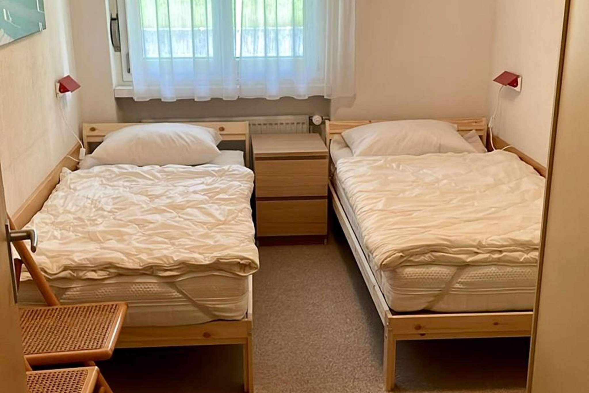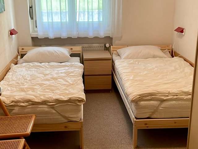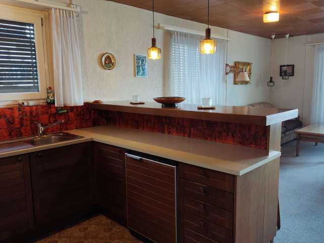 The spacious apartment on the top floor is functionally furnished. Beautiful landscape pictures decorate the walls. The apartment has two balconies with morning and evening sun.