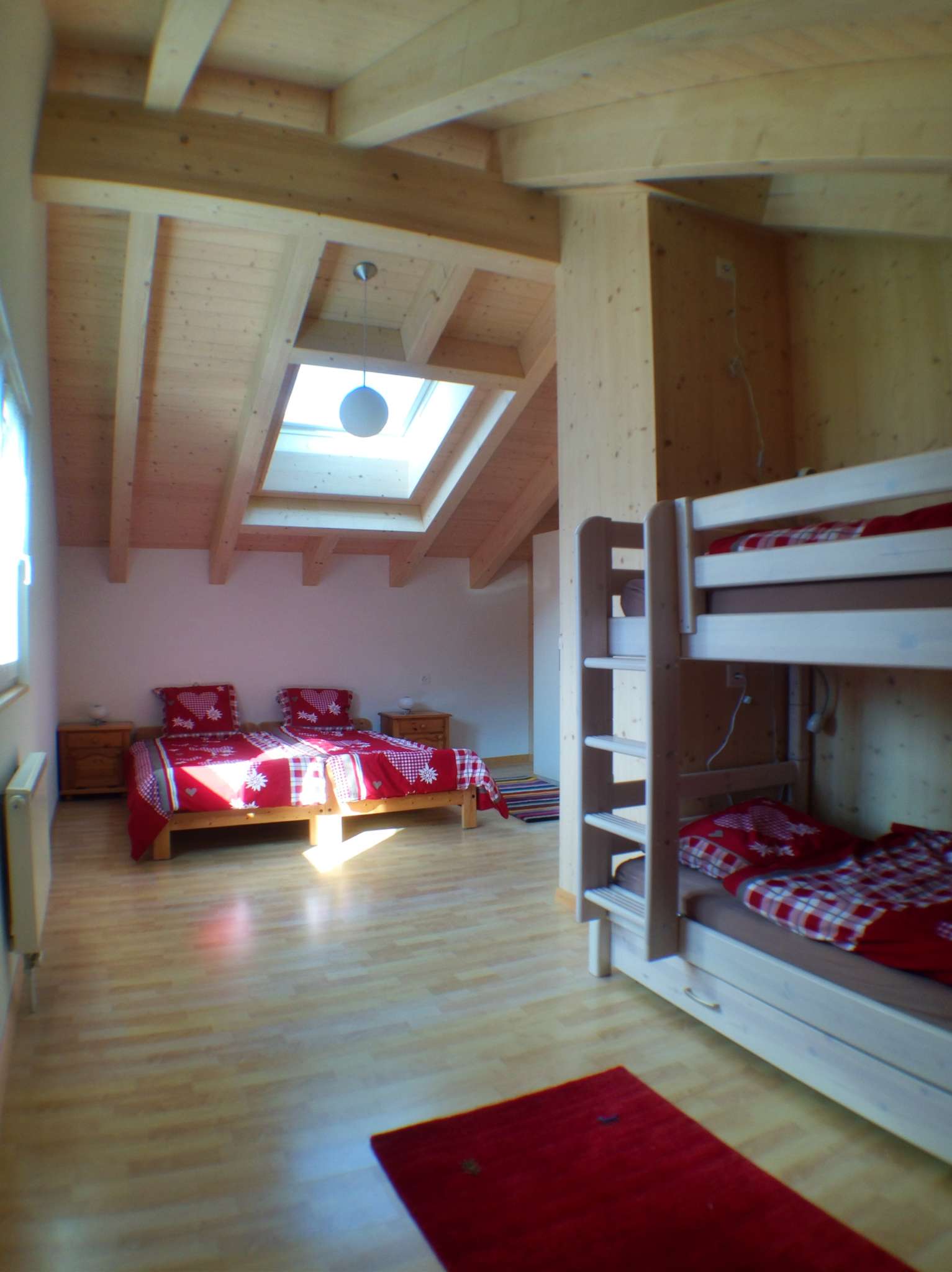 On the upper floor, newly built in 2013, there is a spacious family room with a double bed, a bunk bed and a single bed and two smaller rooms with two single beds each.