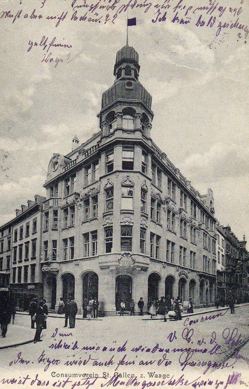 Wendelin Heene (1855-1913), a native of northern Bohemia who built the scales in 1903/04 for the “Consum Verein”, was probably the most influential architect of his time in St.Gallen. Many of the most interesting large buildings between the early 1890s and 1913 were designed by him.
