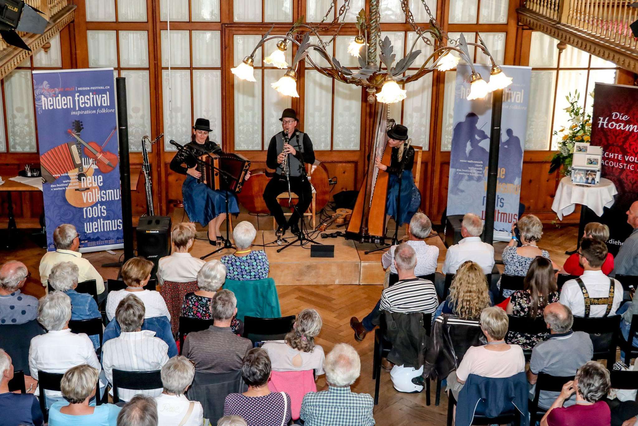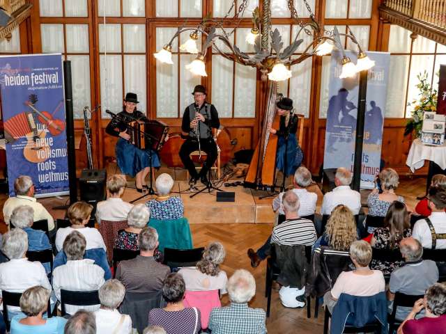 The “heiden festival” is constantly refining its folklore program with creative jazz and classical sounds as well as other exciting surprises. For the 2025 edition, for example, “Oesch's die Dritten”, four-time winners of the Prix Walo and proud holders of various other awards, have been engaged for the Friday. On Saturday afternoon, “Säntis Barock und Bismärklis” will present an interesting mix of French songs from the Baroque period and yodel music from the Appenzell region in the Protestant church. In the evening, “Thomas Gansch und Alpenglühn”, a supergroup of outstanding musicians from Austria, will perform in the Kursaal. The “Ueli Schmezer's MatterLive” band will bring the festival to a brilliant close on Sunday when they revive the songs of the legendary Swiss singer in the Lindensaal, which is likely to be packed to capacity.