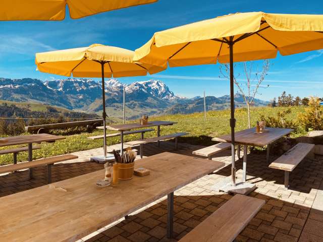 The Hoher Hirschberg mountain inn is very easy to reach for hikers, bikers or by car. On the hilltop, you’ll be rewarded with a magnificent view of the Alpstein and the Rhine valley around St. Gallen. This destination restaurant is renowned for its home-made desserts and seasonal dishes. Spending the night on the Hoher Hirschberg is a unique experience. Do you have something to celebrate? Then you’ve come to the right place.