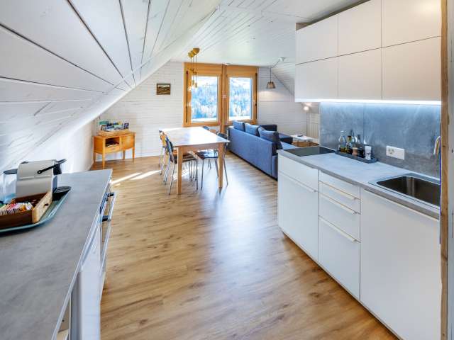 The beautifully furnished 2.5-room apartment is located in the immediate vicinity of Appenzellerland, a hiker’s paradise, and boasts unique views.