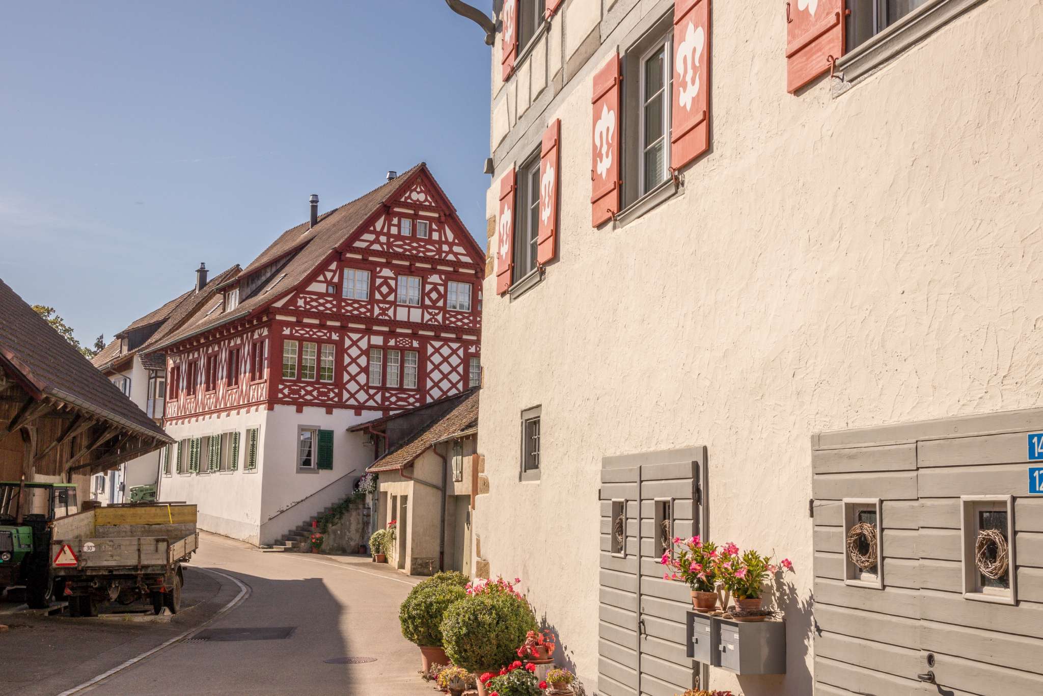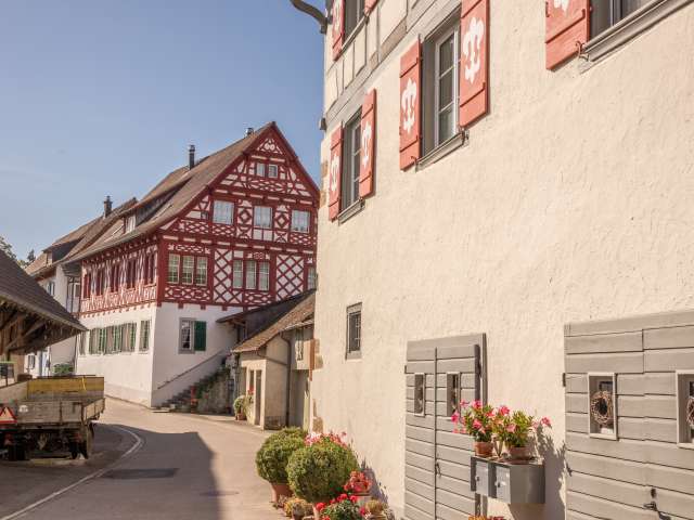 The historic half-timbered house is one of the most beautiful houses in the canton of Schaffhausen. In 1684 Tobias Holländer bought the "Hof zu Hova" and built his noble residence there, the famous Holländerhaus. Next to the house stands the barracks, where he housed his bodyguard according to his status. Tobias Holländer was the most influential man of his time in the Schaffhausen town council.