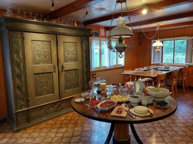 The Hotel Alpenhof in Weisstannental has been a historic hotel in the village of Weisstannen with a stylish ambience since 1874. Enjoy the hospitality in nostalgic rooms, a cosy dining room and a Biedermeier parlour with a reading room. During the summer season, the dining room also offers a festive atmosphere for celebrations, seminars and cultural events. When the weather is sunny, guests can enjoy the pleasant coolness of the garden terrace with its shady trees. The Biedermeier rooms are furnished with antiques and the Belle Epoque rooms are furnished with historical furniture from the hotel's collection. For hotel guests, we prepare a delicious 3-course menu using mostly regional products. The Hotel Alpenhof is the ideal starting point for hikes to the Batöni waterfall arena and a stopover along the Via Alpina and the Sardona World Heritage Site in the UNESCO World Natural Heritage Site Tectonic Arena Sardona. In winter, when snow conditions are good, you can also enjoy a number of ski tours and snowshoe hikes.