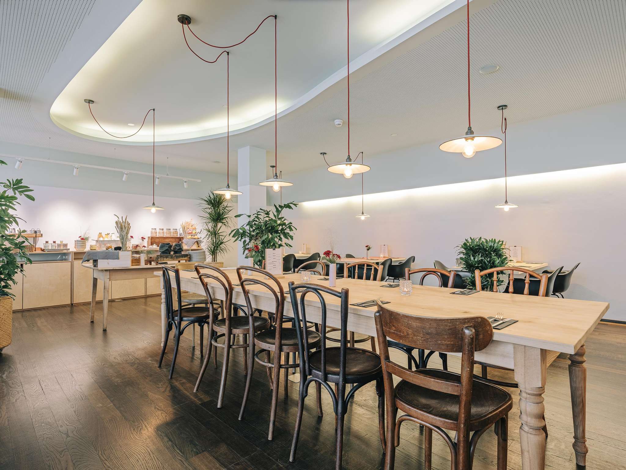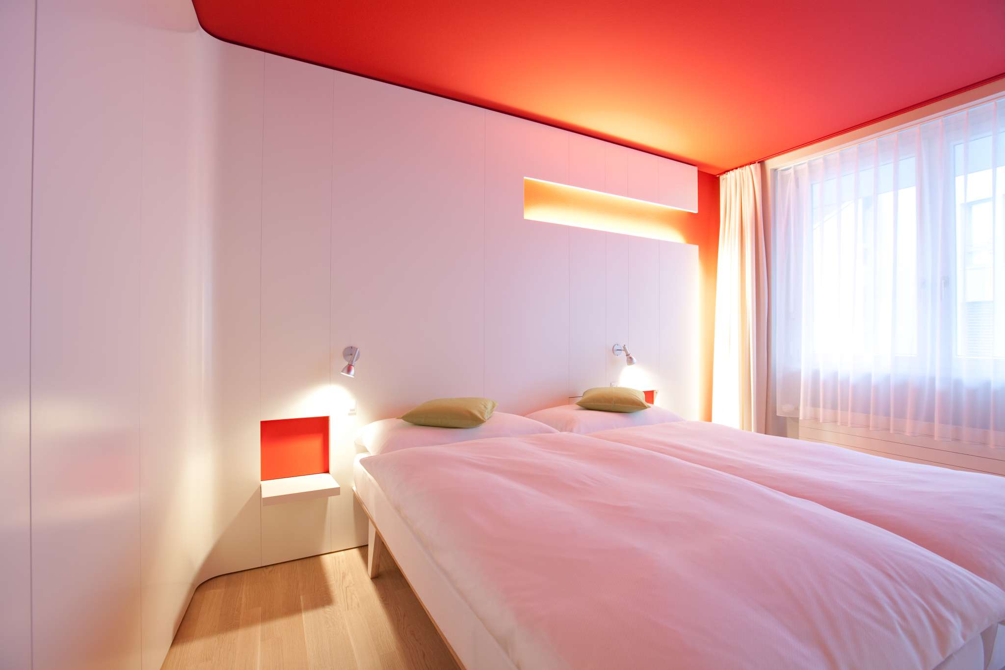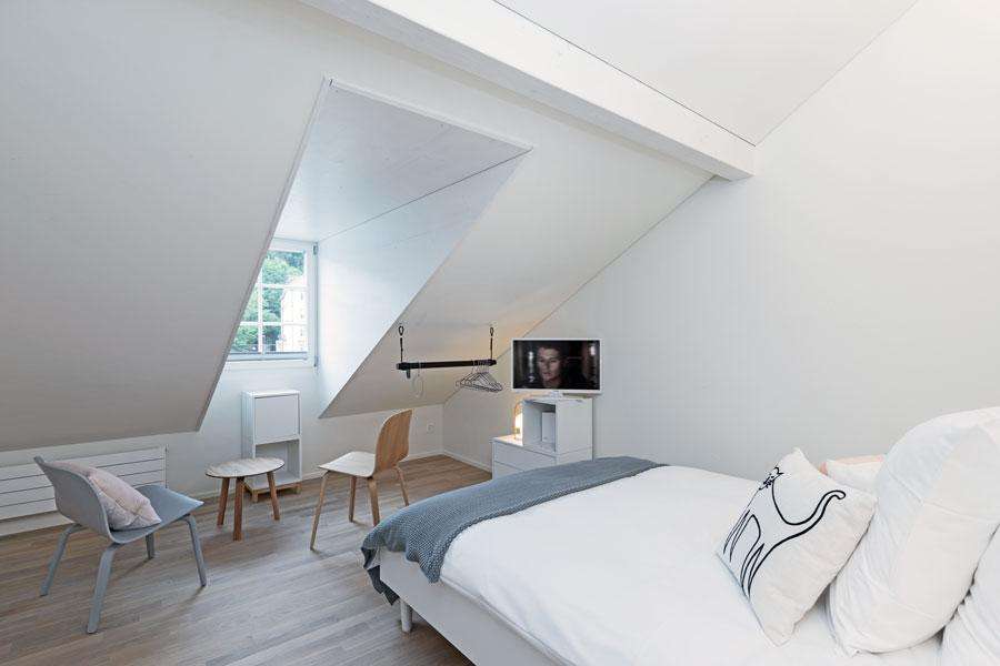 Around 55 people with disabilities find training or work at the Hotel Dom and are employed in all areas. The concept, which is unique in the region, is highly regarded by guests and locals alike. The hotel has a rather sober exterior design, but impresses with its colorful interior. It is located in the heart of the old town, right next to the abbey district of St.Gallen.