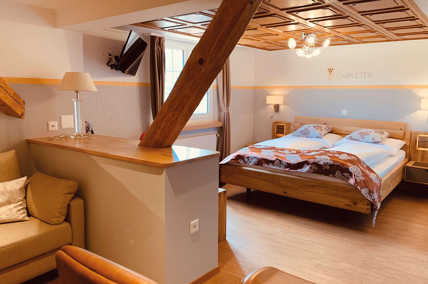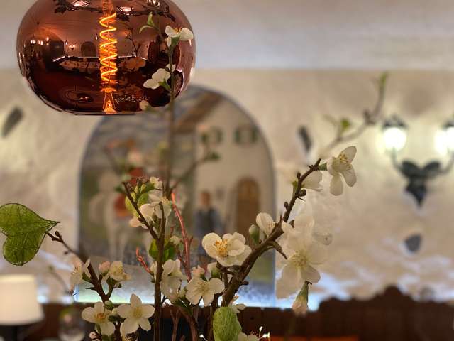 Excellent wines from the well-stocked wine cellar match the outstanding dishes. Take a seat in the romantic rooms, the cozy "Bündteria" or on the sunny terraces. By the way, the romantic boutique hotel is recommended for a relaxing time out.