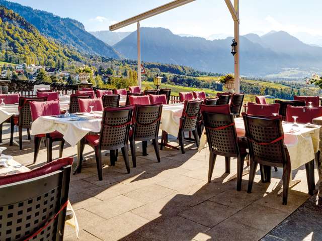 The fantastic panoramic location amidst vines tells its own tale, and you are invited to feast: Grisons specialties, international and Asian delicacies, the best wood-fired pizzas, fine desserts ... everything market-freshly prepared, seasoned with passion and friendly served.
