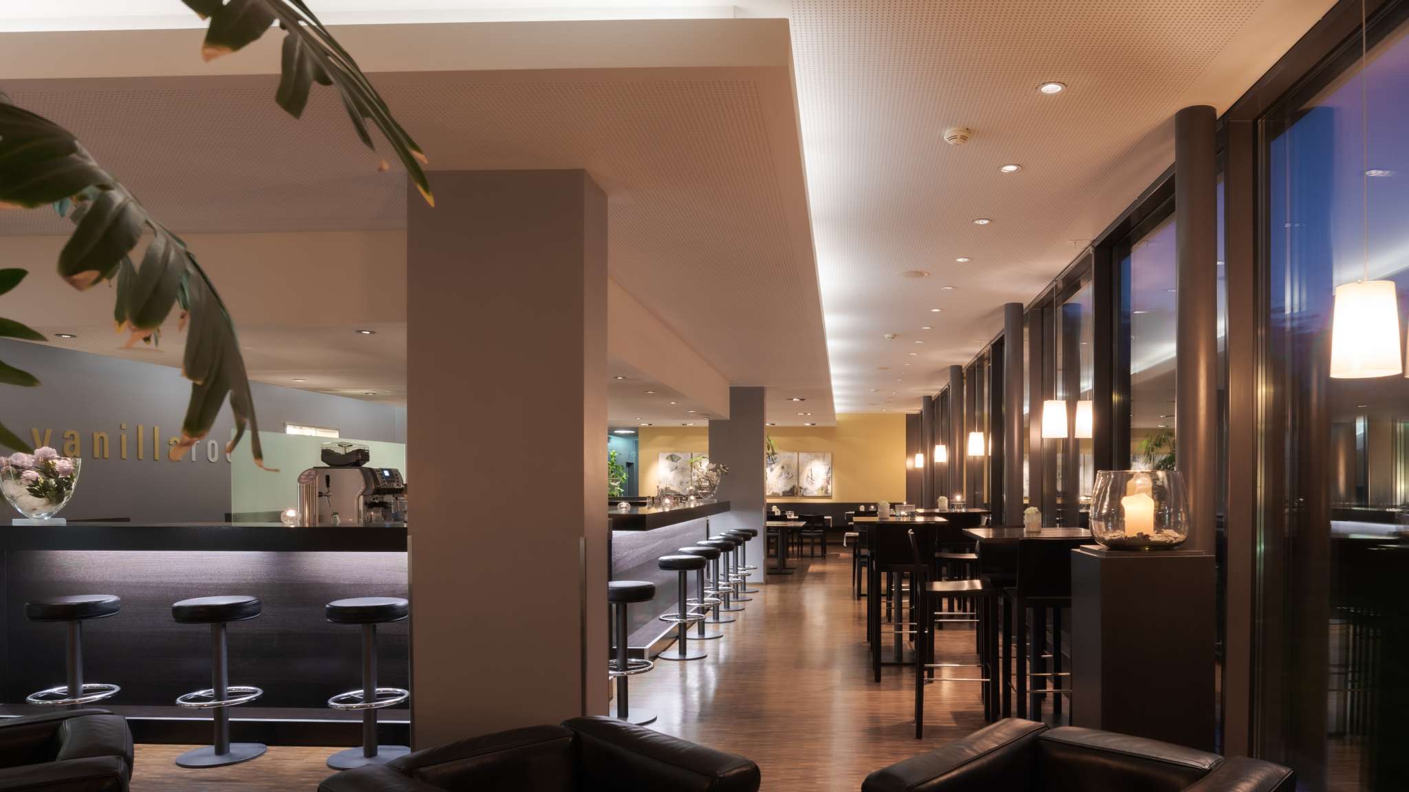 The stylish Vanillaroom and the covered terrace in front of the hotel are ideal places to retreat and relax. Where breakfast is served in the morning, the Vanillaroom is transformed into a lounge and bar in the evening. A menu with selected wines, cocktails and fine, home-made snacks invites you to enjoy an aperitif or a social get-together. Hot meals are available until midnight for late arrivals.