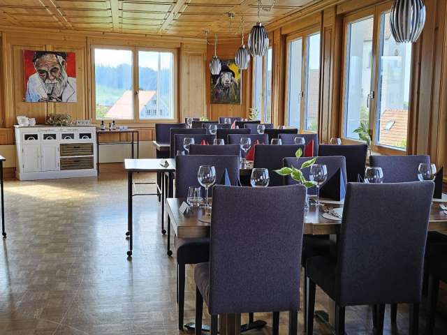 The Krone restaurant in Wolfhalden is a real insider tip for gourmets and lovers of traditional Swiss cuisine. Nestled in the picturesque landscape of the Appenzellerland, this charming restaurant not only offers culinary delights, but also a breathtaking view of the surrounding mountains, valleys and Lake Constance.