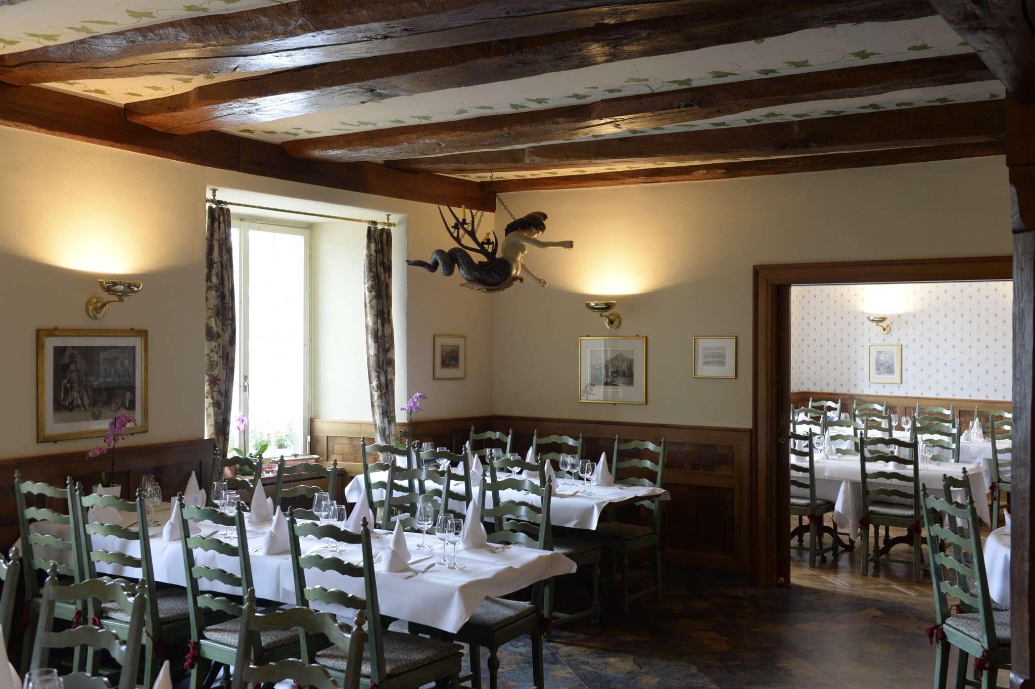 You can enjoy regional dishes and French cuisine, as well as the wonderful scenery, on the terrace right by the Rhine or in the historic rooms. 40 minutes by car north of Winterthur.