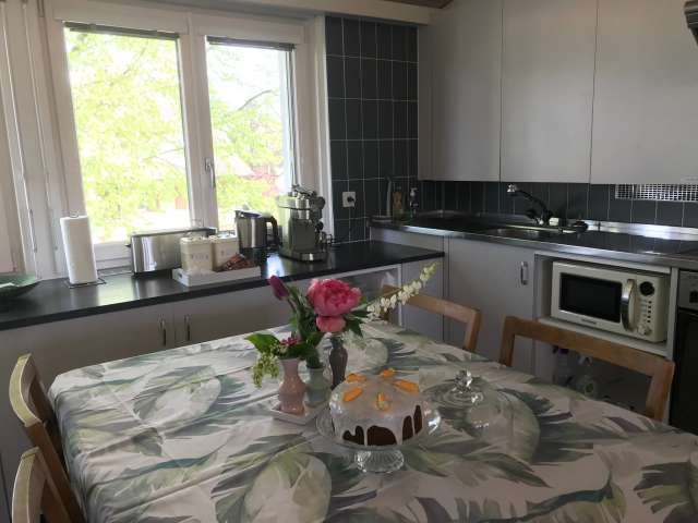 There is also a small balcony (for smokers) in the stairwell and a seating area in the front garden reserved for guests. There is a car park and bicycle parking space available.
