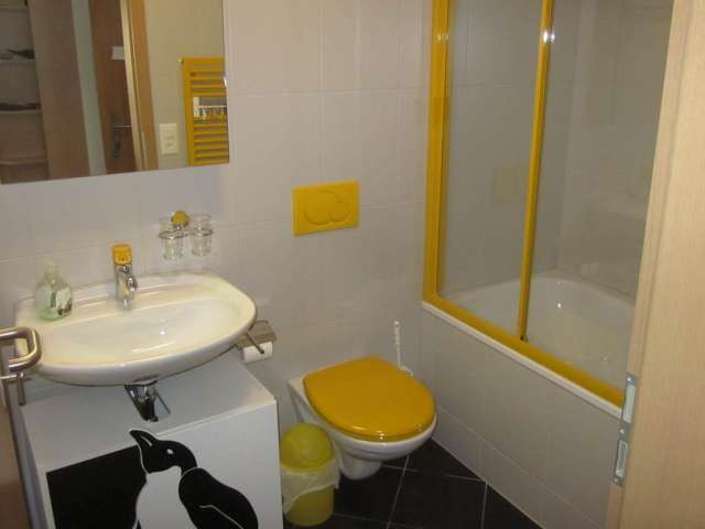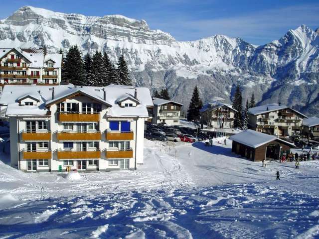 The Jolyhaus Barmettler is centrally located at Flumserberg, right by the Schwammkopf ski lift. The family-friendly 2.5-room apartment accommodates four people and is accessible by elevator. A shared ski room is available on the ground floor.