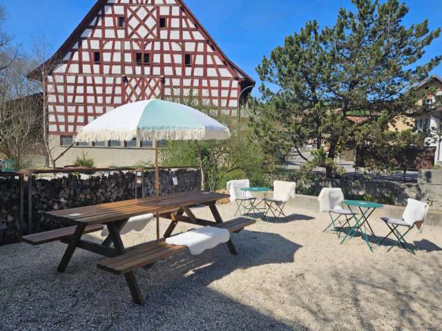 With a friendly "hello" we welcome you to our almost 300 year old manor house! Marvel at the renovated Kalbererstall and the impressive gable height of the barn of almost 18 metres while enjoying the finest cakes and an excellent selection of desserts.
