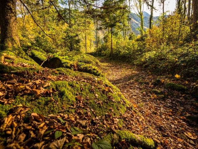 The chestnut forest above the village stretches impressively towards the Murg Valley and is one of the largest contiguous stands north of the Alps. Between ancient, gnarled trees, young plantations and specially planted stands for timber production, the sweet chestnut can be seen in all its facets. The freshly planted Selve and the natural regeneration areas reflect the efforts to preserve and sustainably use this unique habitat. Especially in the fall, from around mid-September to mid-October, the aromatic scent of ripe chestnuts fills the air and numerous shiny fruits can be found on the forest floor. The Murgbach gorge with its waterfall rushes through the middle of this wild and romantic forest - a natural experience of rare originality. Between the trees, you will discover artistically crafted wooden sculptures that bring the forest to life. Information boards provide fascinating facts about the history, significance and management of this special chestnut forest, which is equally valuable for humans and animals.
