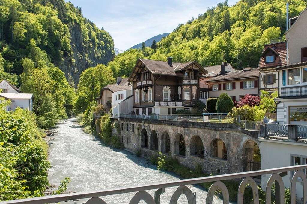 The Krone by b_smart in the center of Bad Ragaz is a self check-in hotel without a reception. Nearby are the Tamina Therme, a nature park, and a golf course.