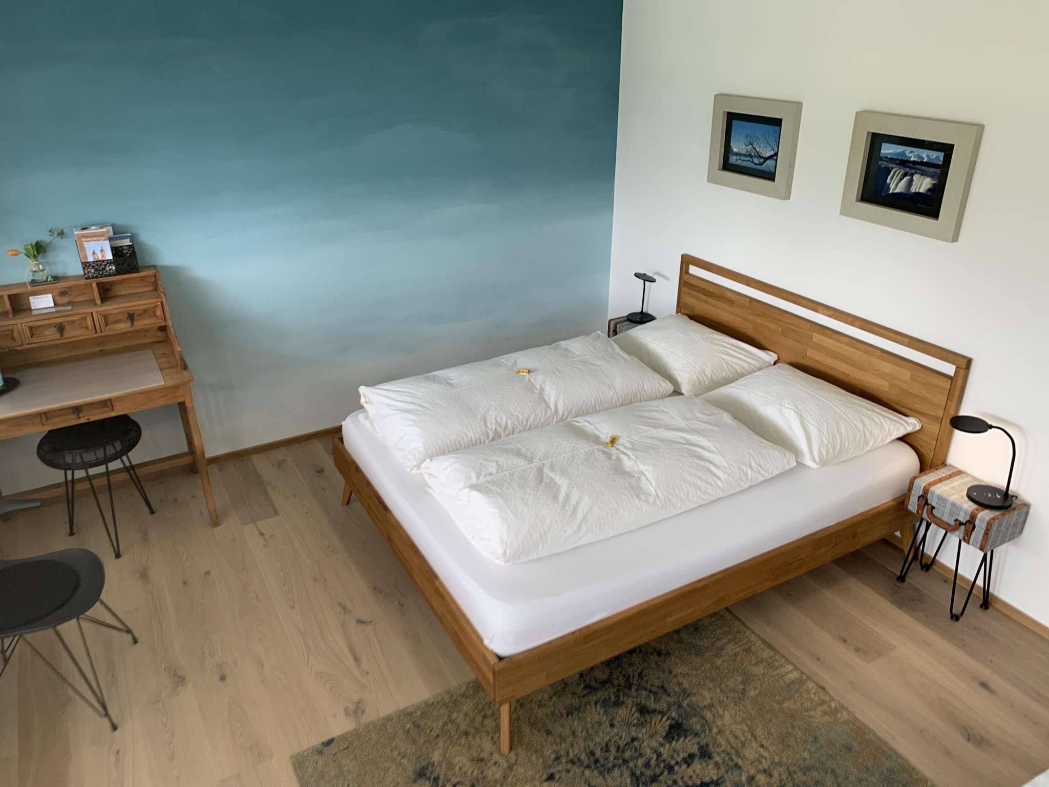 The bed & breakfast is located on Lake Constance and is the ideal starting point for bike tours around the lake and through the beautiful Thurgau. The nearby Alpstein invites you for long hikes and in the evening Lake Constance refreshes you with a cool swim. Bathe in the sun on the beautiful terrace or enjoy a little nap in the shade. The guest is assured of peace and quiet at Lake Lodge. The spacious and tastefully decorated rooms can accommodate 2 or 4 people. The common areas such as kitchen, living room and dining room are spacious and in autumn and winter a cozy fireplace burns. Hospitality is the main focus at Lake Lodge and conversations with the hosts are always welcome. Within walking distance around the dock there are several restaurants that spoil guests with international dishes.