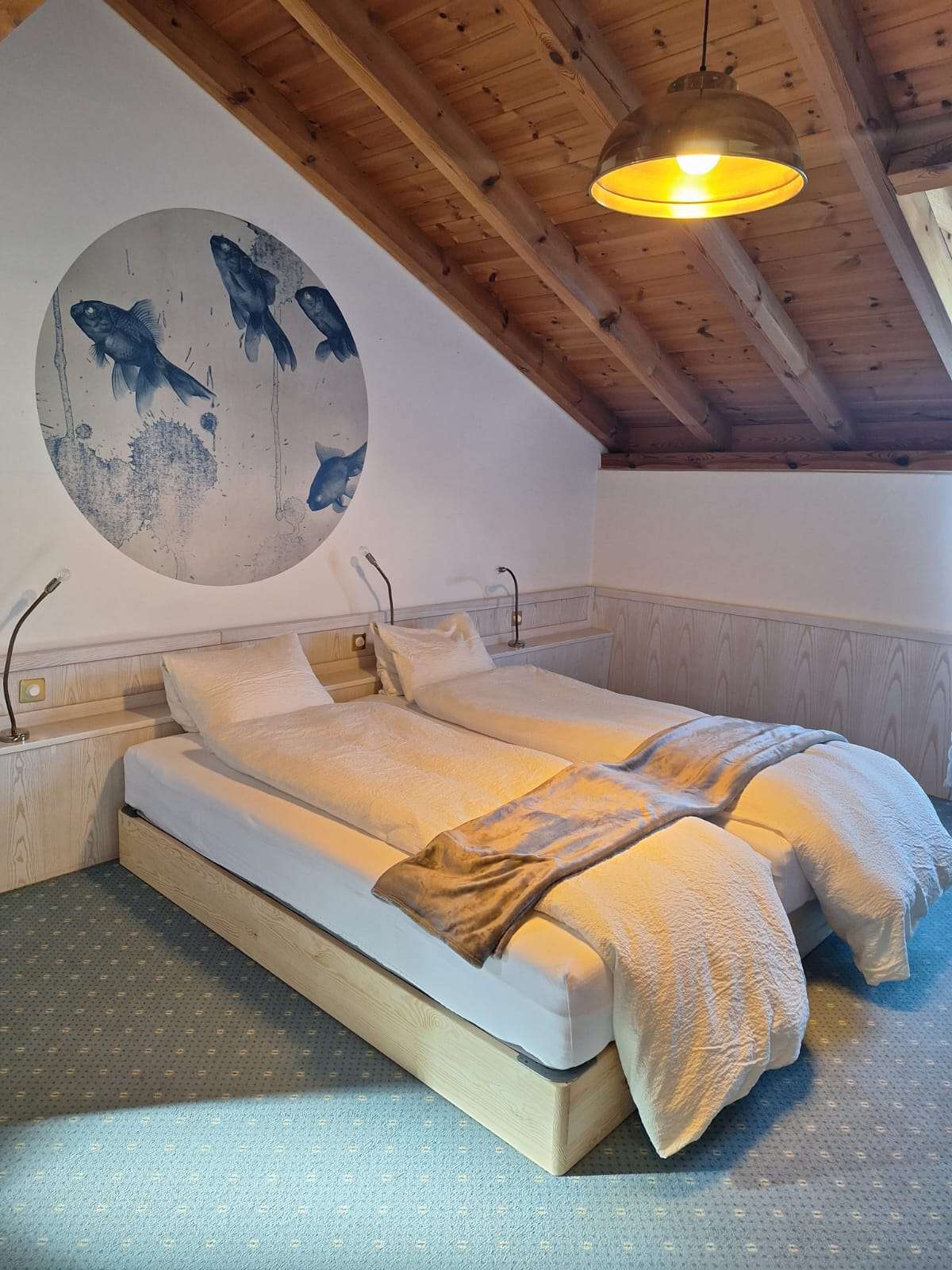 The Landgasthof Aachbrüggli in Erlen is beautifully furnished with attention to detail. The playful decoration, the flowery wallpaper and the concentrated female power of the owners exude charm and joie de vivre. The seven hotel rooms also reflect this and invite you to spend the night in the heart of Thurgau. Guests are delighted daily with a regional breakfast, one of the best barista coffees far and wide, daily fresh cakes and chocolate specialities, such as the famous "Schoggischümli". Fresh and seasonal lunches with ingredients from the region and drinks at a small fine bar are available every Tuesday and Friday. Every first Sunday of the month, breakfast is extended to a delicious brunch. Much of the food is homemade, such as the croissants or the Huusmüesli, and the rest comes from Erlen or the neighbouring village. The sweet dessert temptations can be purchased in the shop and taken home. During the summer, the Aachbrüggli team also runs the circus wagon with self-service coffee at the Neubauer organic nursery on the edge of the village.