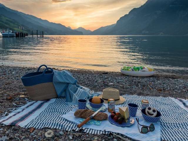 The beach on the grounds of the Resort Walensee is the perfect place to get your tan on warm summer days. For your comfort, an extensive lawn and a beach kiosk are at your disposal. To enjoy a meal after swimming, the panoramic terrace of the Resort Walensee is the best place to lie back.