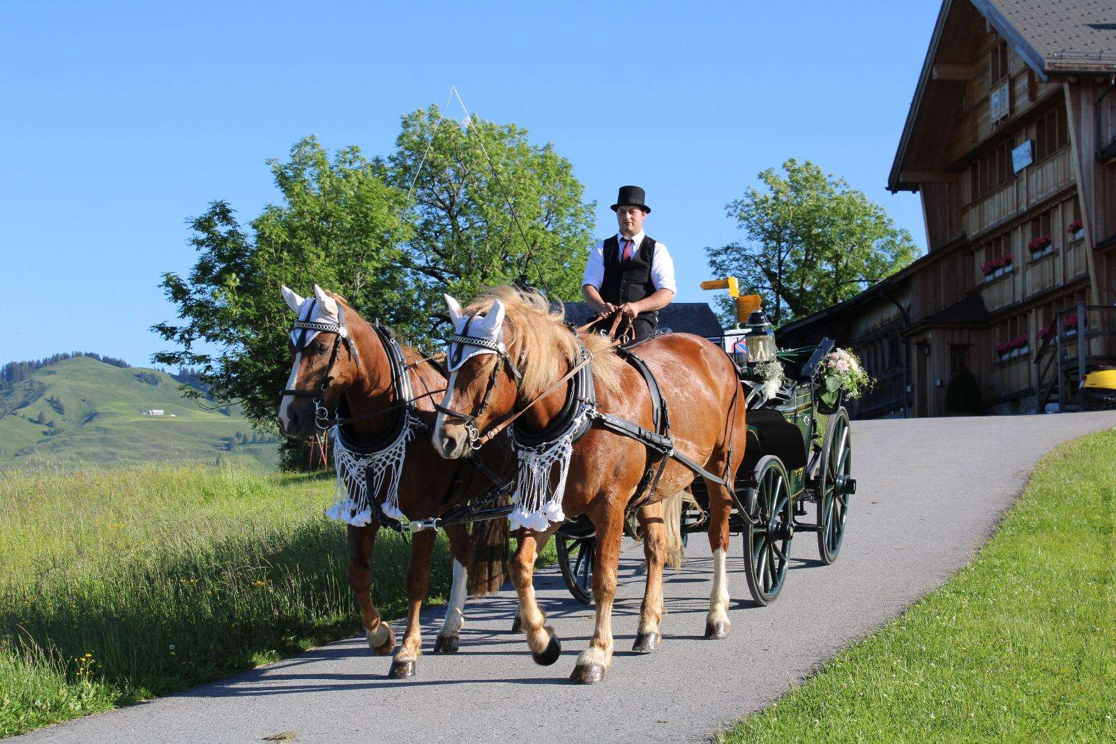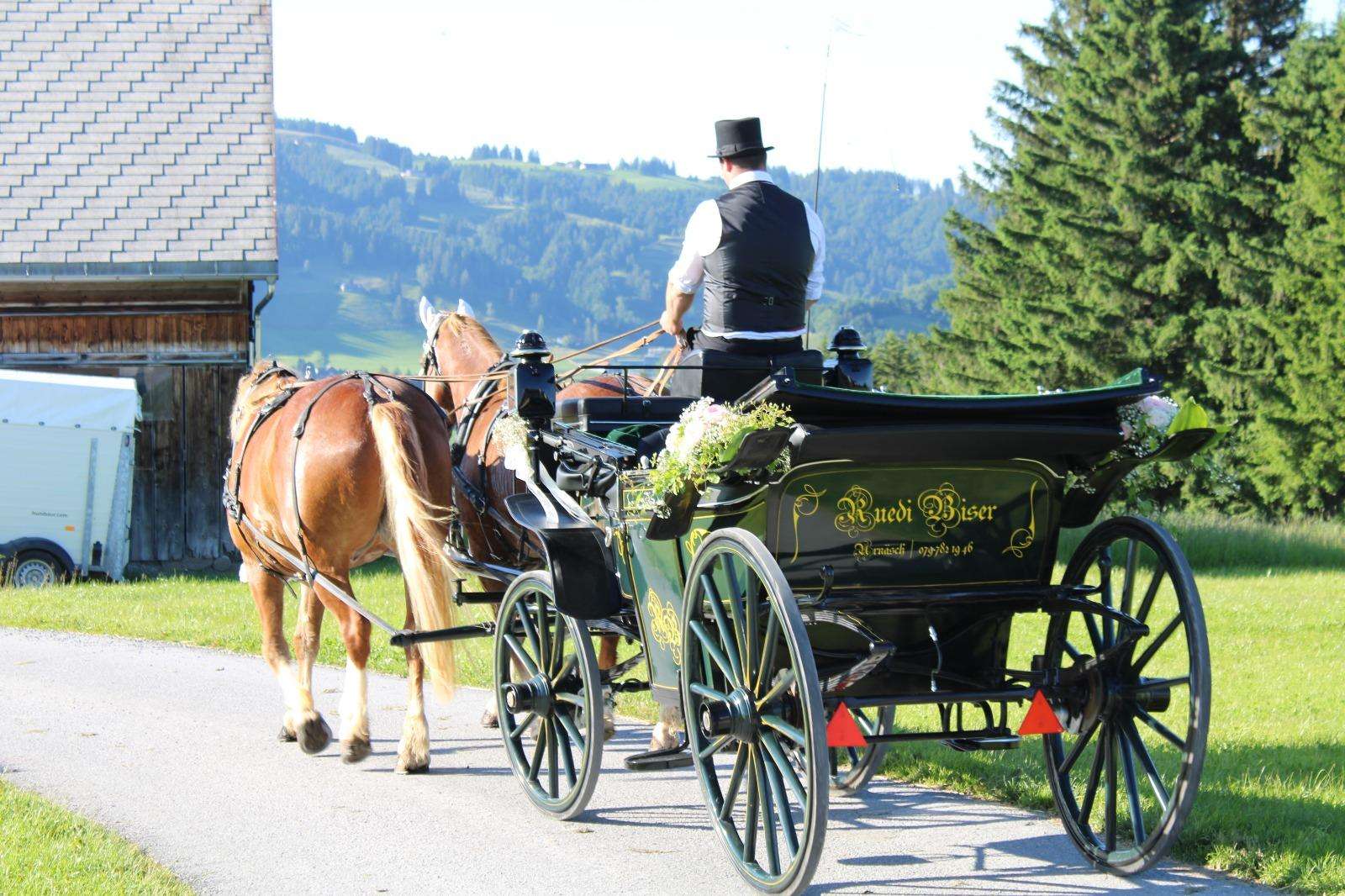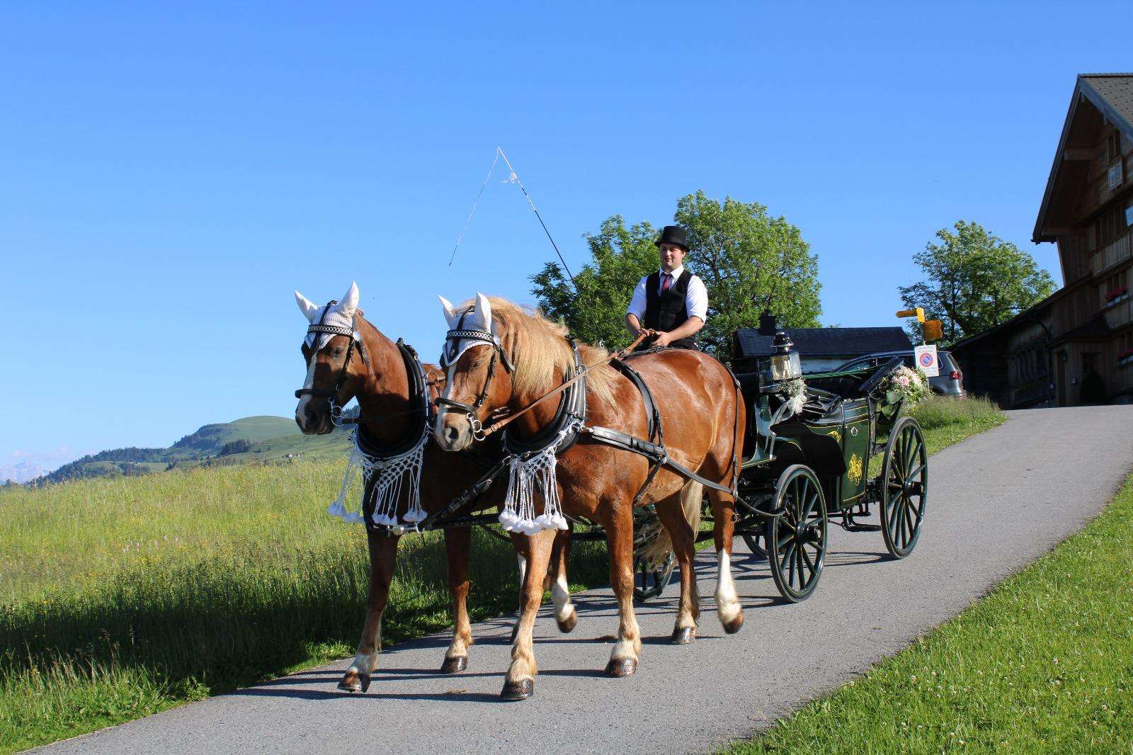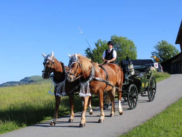 Trained farrier and farmer Ruedi Biser offers a range of interesting and relaxing rides with his horses. A variety of carriages are available to suit every occasion.