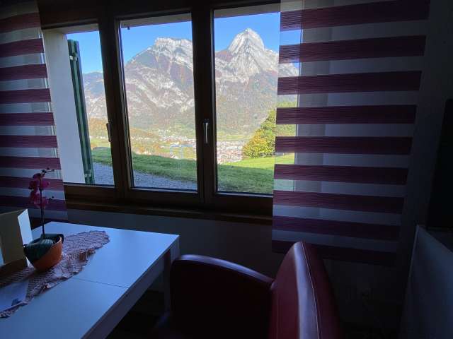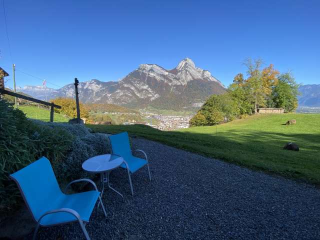 The fully furnished studio on the first floor of Lueg ins Land is located above the beautiful Mels in the vacation region Heidiland. Great view of the surrounding mountain landscape. To the apartment belongs a garden seating area with barbecue facilities as well as an additional storage room and a parking space is available.