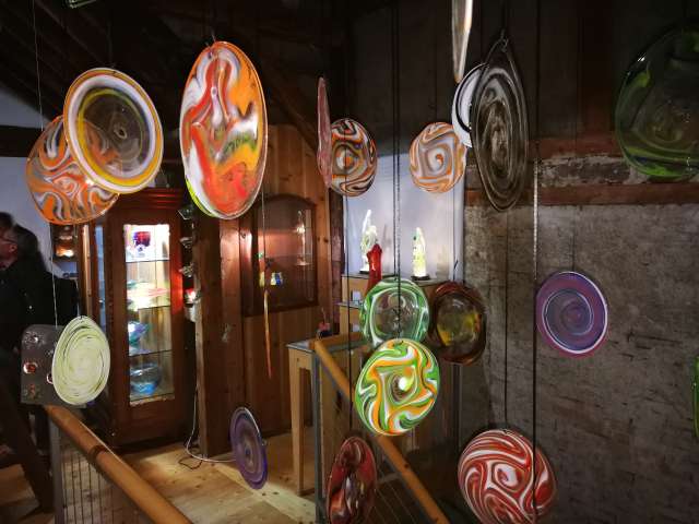 Glass-blowing tours are offered on request. In a good half an hour you can learn a few fascinating glass-blowing techniques and will be able to blow your own glass ball or flower.