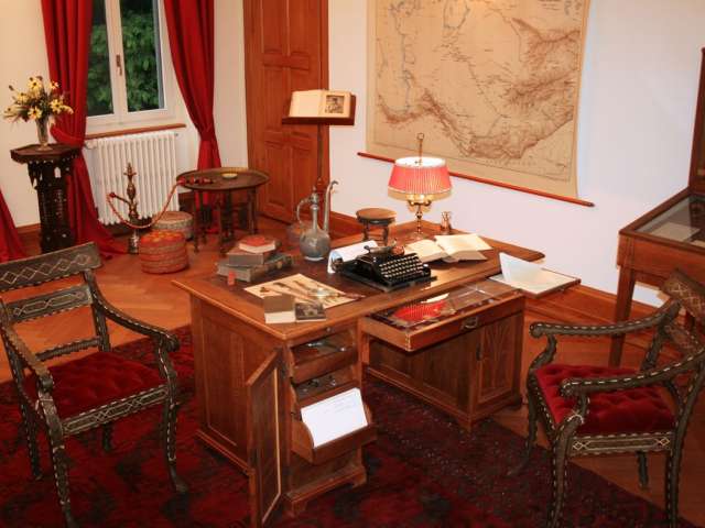 Son Henri in turn undertook adventurous journeys through Central Asia and worked as a diplomat, writer and photographer. He bequeathed his home country with a distinguished collection of ornamental weapons and handcrafted objects and he presented Schaffhausen with the estate called, Charlottenfels.