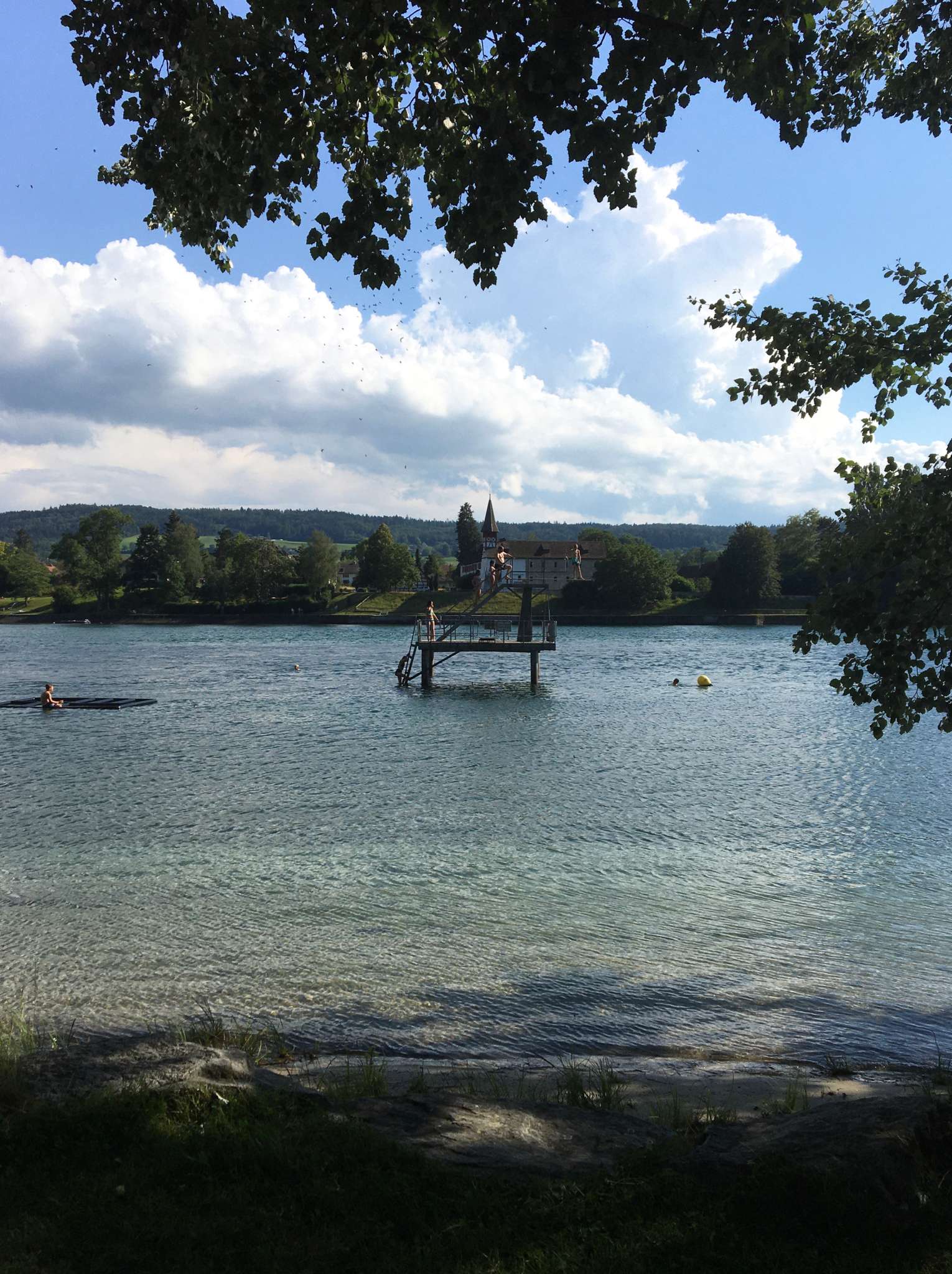This is a bathing place in open, flowing water. Swimming without experience in the Rhine is not to be underestimated.