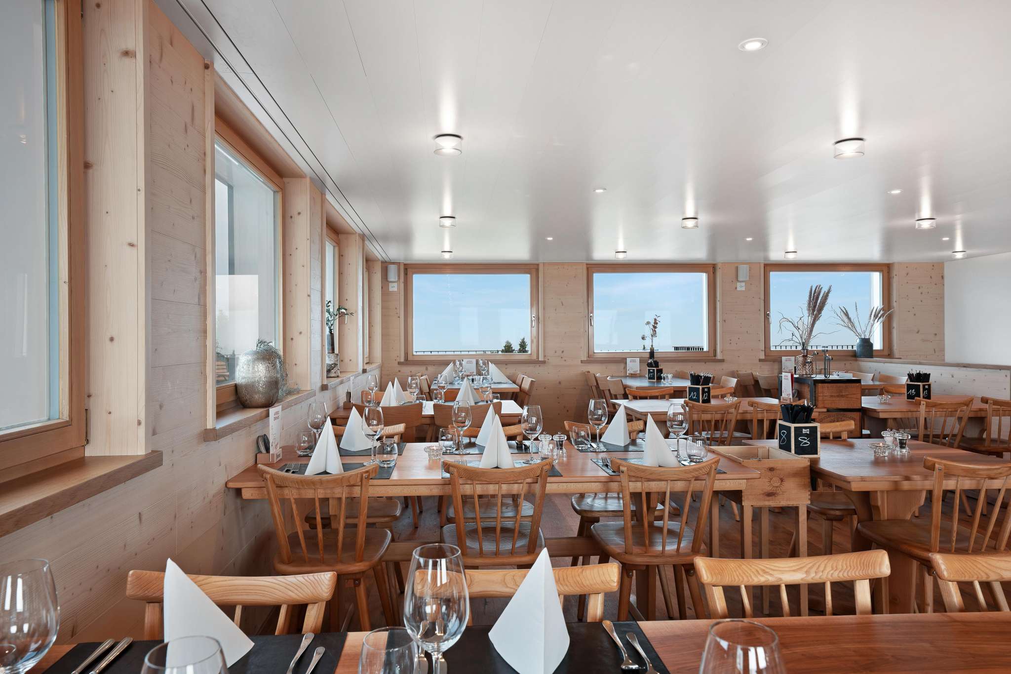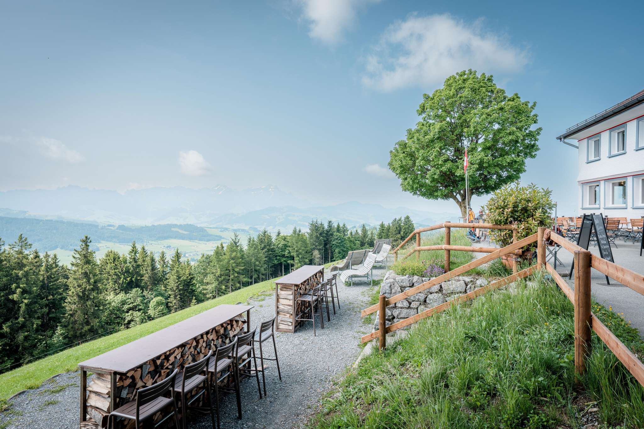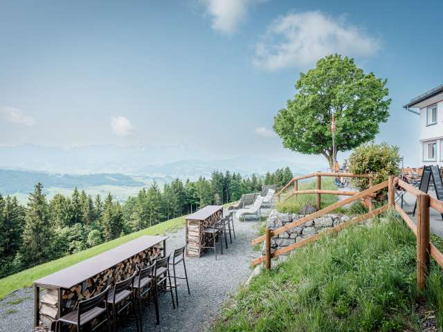 The Oberer Gäbris inn is located above Gais and offers a magnificent panoramic view of the Alpstein and Lake Constance, stretching beyond the borders to Germany and Austria.