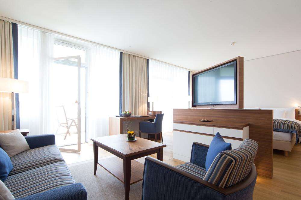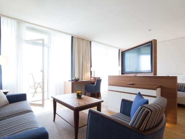 All our spacious rooms are modernly furnished with hardwood floors, a seating area and a large balcony. Wi-Fi is available free of charge throughout the hotel.