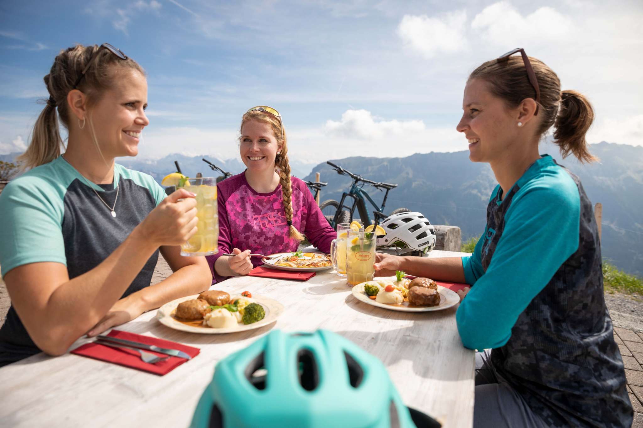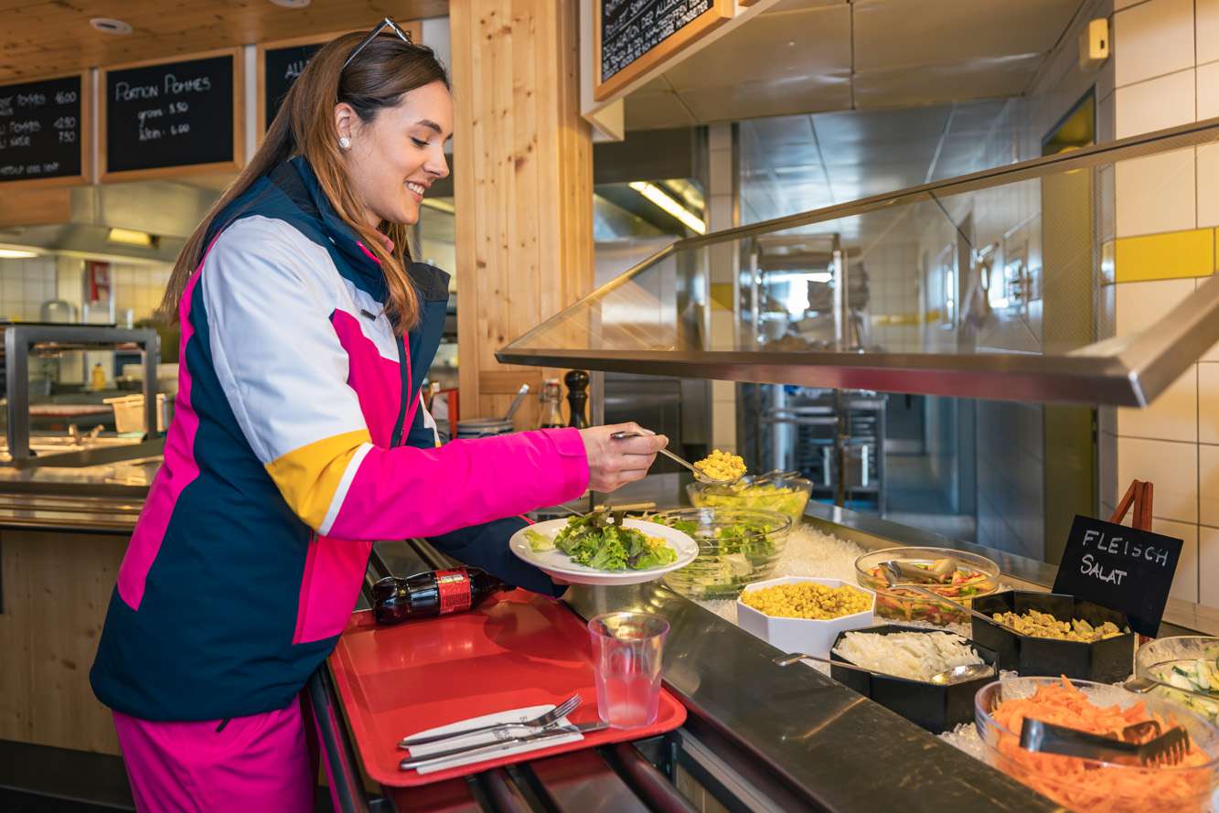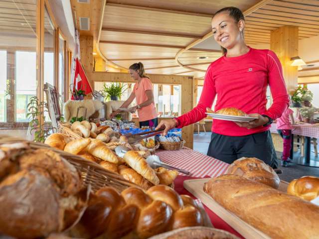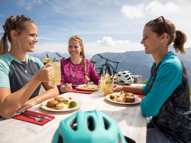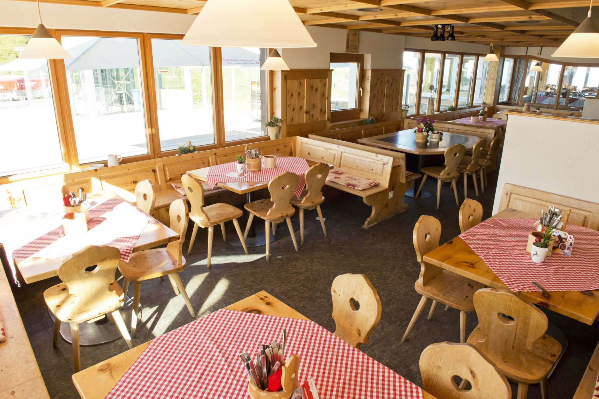 There are 80 seats available in the bright round building. In the spacious hall, 240 guests can enjoy the view of the Churfirsten and the cosy Stübli offers 48 seats with the best view of the Spitzmeilen area. On the huge sun terrace, 600 guests can marvel at the breathtaking panorama at the same time (200 seats). Deckchairs are also available.