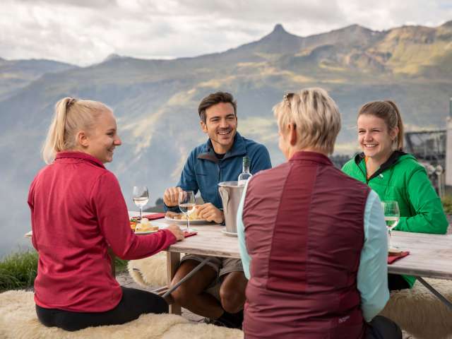 Enjoy the panoramic view of the surrounding mountains from the highest catering establishment on the Flumserberg. On one side, let your gaze wander relaxed over the expanse of the Spitzmeilen area with its characteristic landmark, the 2501 metre-high Spitzmeilen, or on the other, be enchanted by the magical Churfirsten and Alvier ranges with their jagged peaks high above Lake Walen.