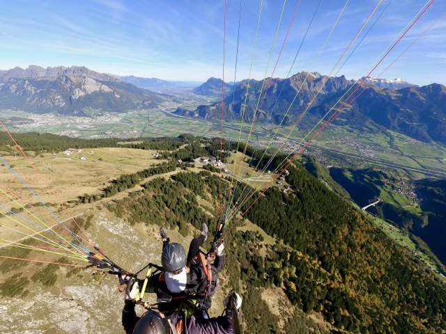 Paragliding tandem flying in Heidiland