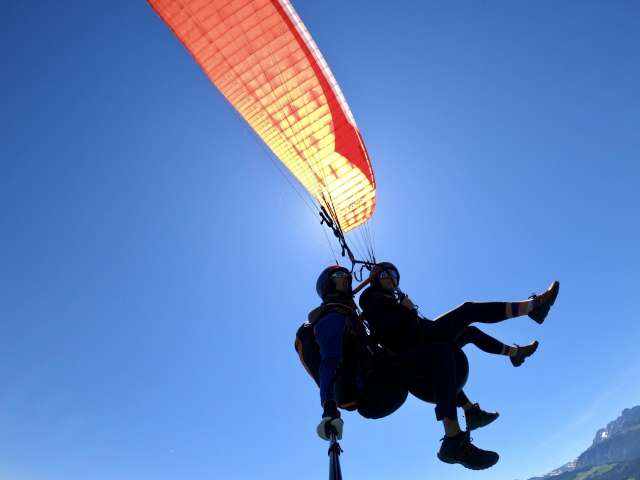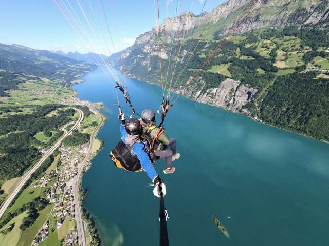 Experience Heidiland from a bird's eye view with a tandem paragliding flight. Start from Pizol or Flumserberg and enjoy the view. No prior knowledge needed, equipment is provided. Ideal for groups up to twenty people.
