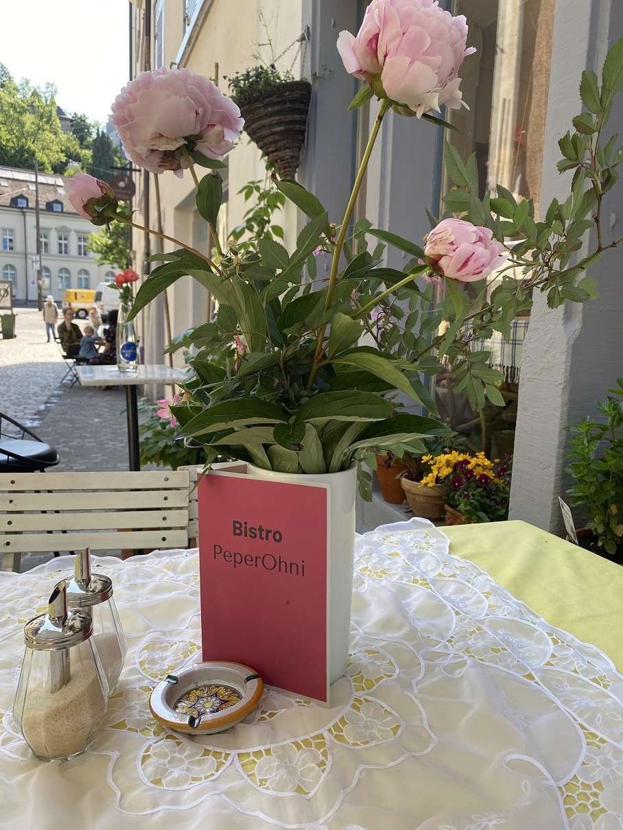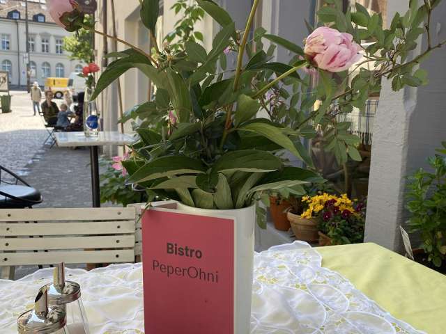 We are happy to serve you in our cosy, lovingly furnished restaurant and on the terrace. PeperOhni is located in the charming Webergasse in Schaffhausen's old town. Our offer includes coffee and tea specialities, home-made, seasonal dishes and cakes, panini, antipasti, sparkling refreshments, regional beers, wines and aperitif drinks. A warm welcome!