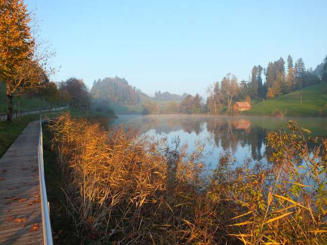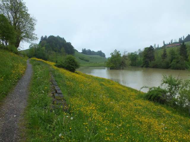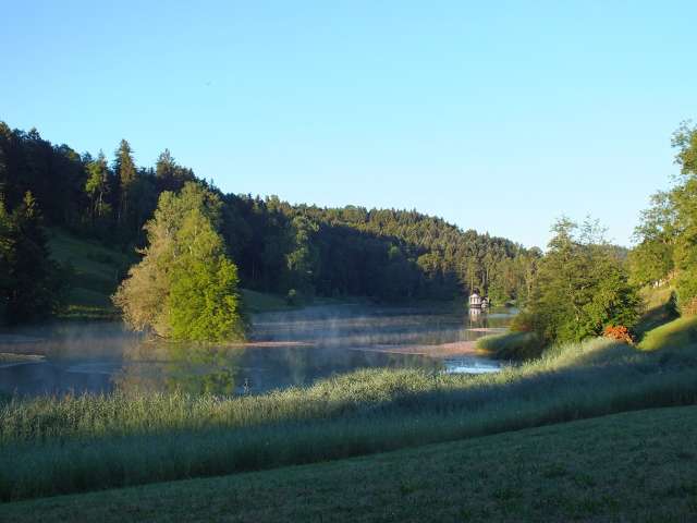 The beautiful trail starts at the Wenigerweiher. Benches and walls invite you to linger. Lush flower meadows line the path. Depending on the season, you can also see and hear toads or frogs, as this is also an important amphibian spawning area. At the end of the pond, the trail leads through sections of forest and over bridges along the Steinach River.