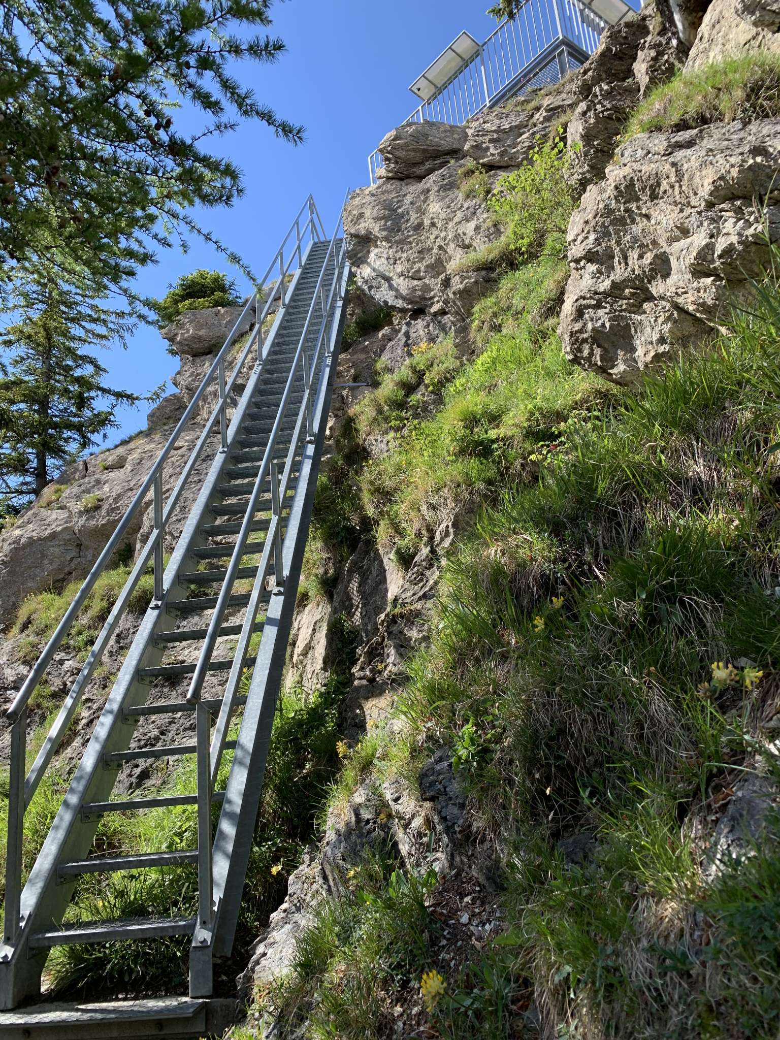 The viewing platform can be reached from the valley station of the Tristeli ski lift in just under an hour. A slightly ascending hiking trail leads through forests and flowery meadows to the summit of Pizalun. A steep but well-developed staircase leads up to the observation deck Pizalun. From Pizalun down towards Fürggli, a leisurely hiking trail leads past the Jägeri mountain inn. On the plateau we return to the starting point on the rarely used road.